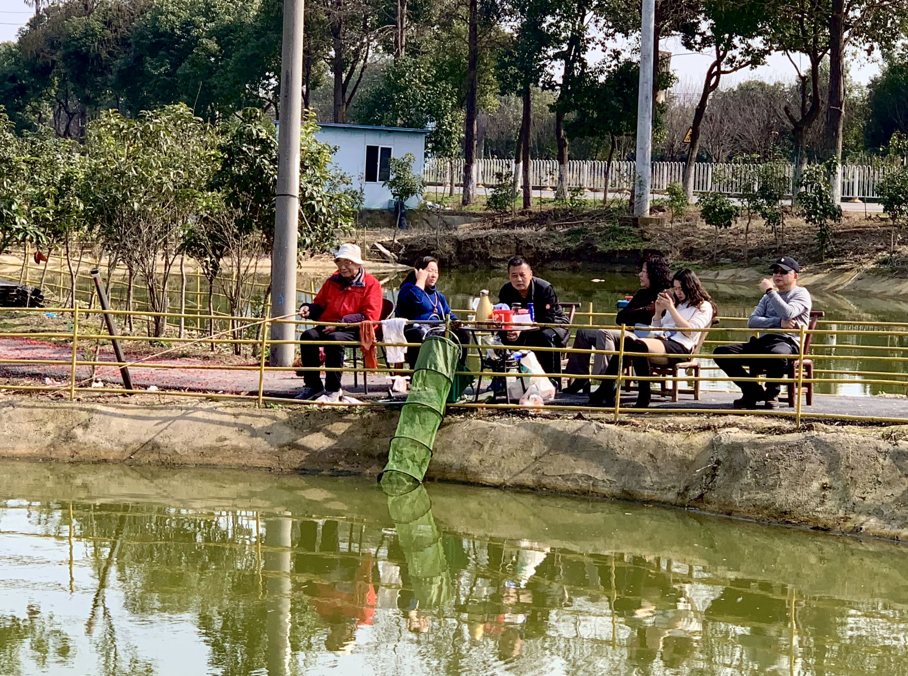 东西湖东柏路,全家人陪老爷子乡村游。老爷子钓鱼,家人都围坐在老爷子身边,边拉家常边晒太阳,其乐融融。城市摄影队 吴民 摄