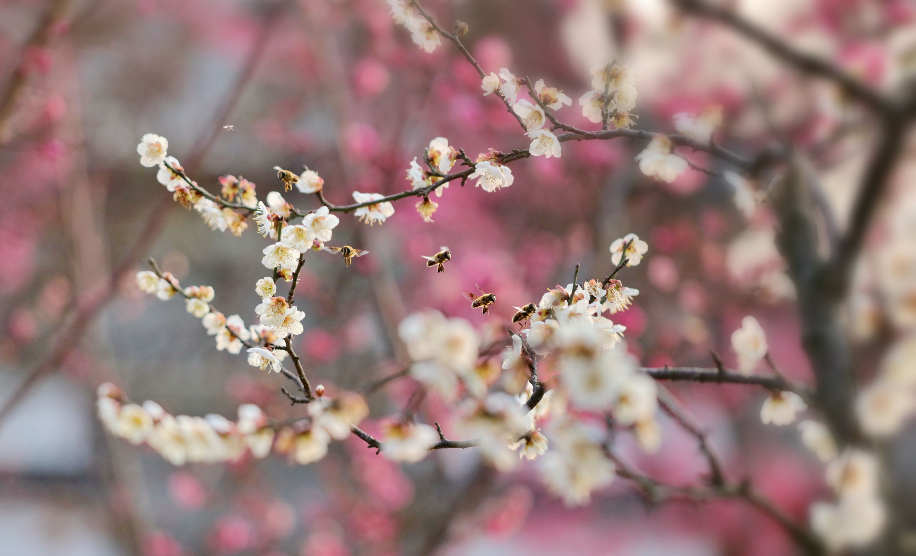 沙湖公园,梅花的暗香招来了辛勤的小蜜蜂。城市摄影队 孙树海 摄