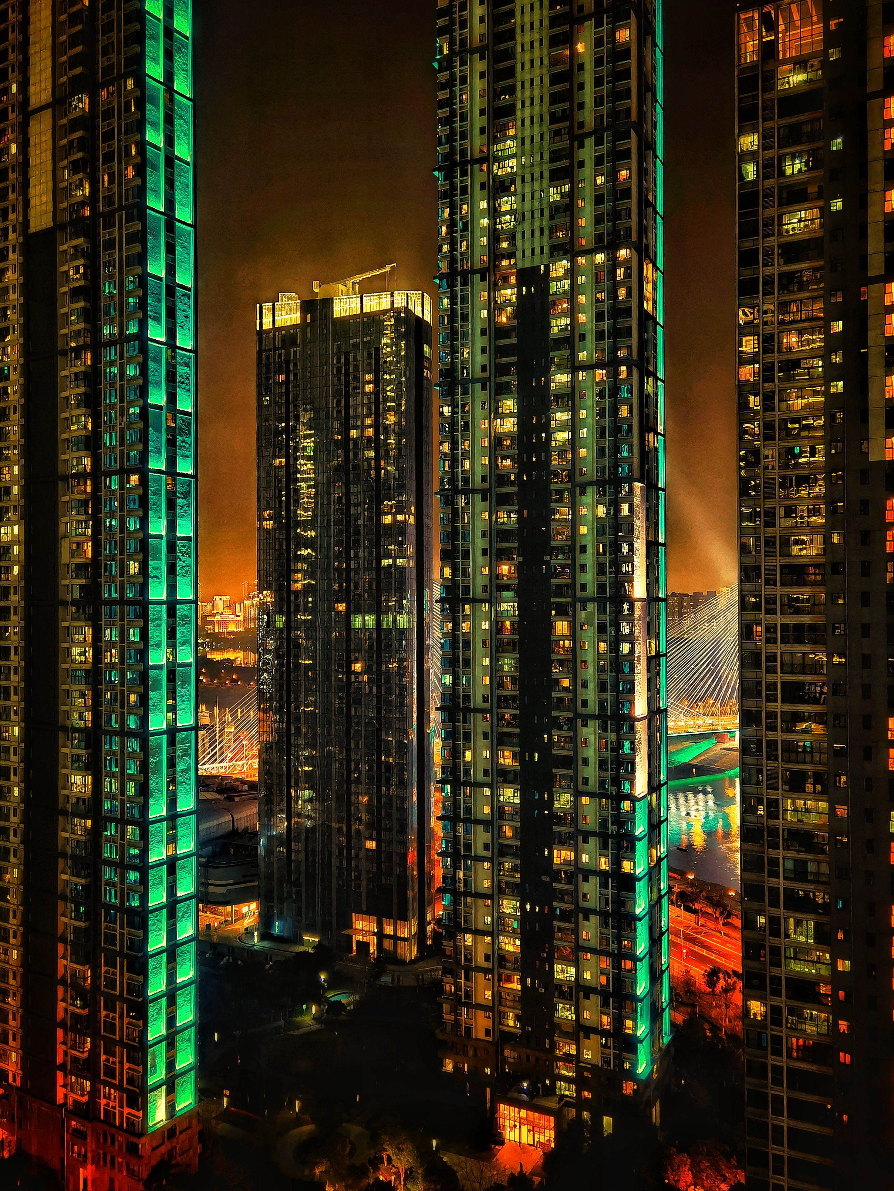 入夜,从窗口望去,灯光璀璨,满城流光。城市摄影队 胡宏元 摄