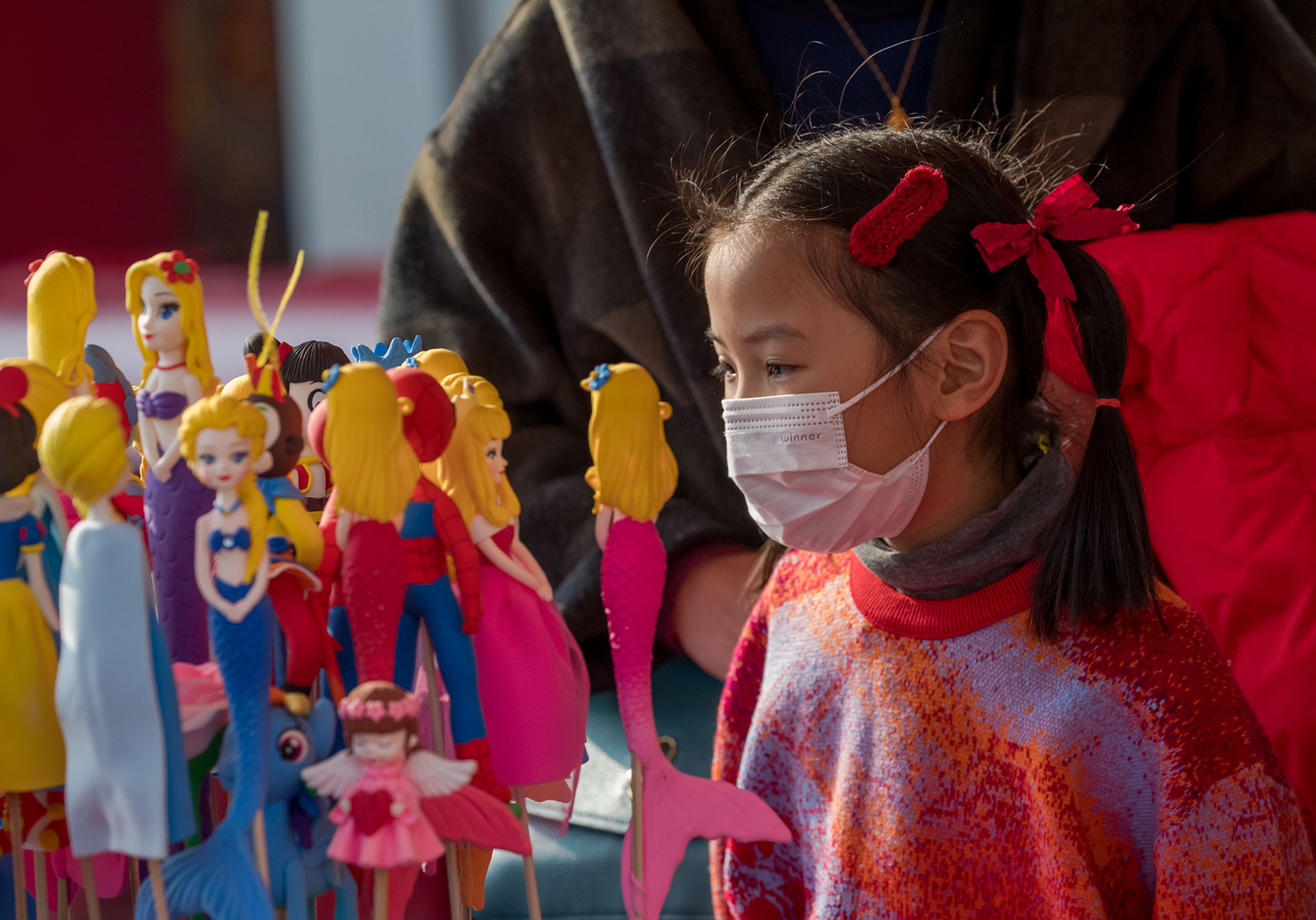 吉庆街,栩栩如生的泥人,把小女孩的眼睛都看直了。城市摄影队 韩昶光 摄