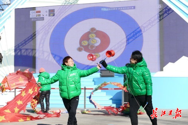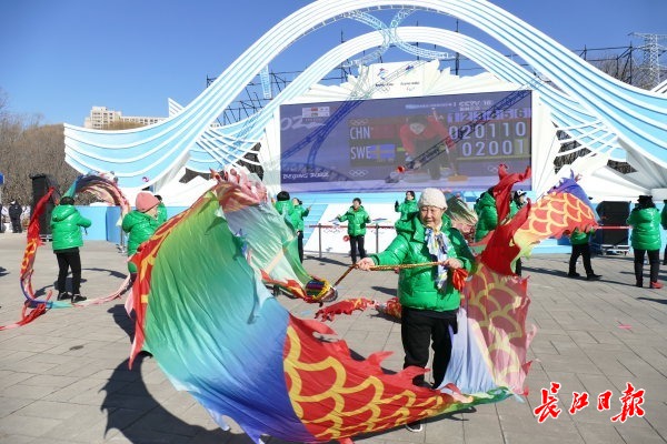 长江日报大武汉客户端2月4日北京讯 4日,长江日报记者在2022北京冬奥会和残奥会朝阳区冬奥文化广场看到,市民们在这里体验冰壶运动,看冬奥会转播,舞龙、抖空竹,通过VR互动游戏感受滑雪等冰雪运动。而一旁的冬奥会特许商品店更是被众人扫货,冬奥会特制徽章等刚刚摆上柜台就被销售一空。