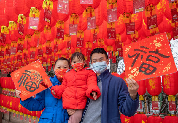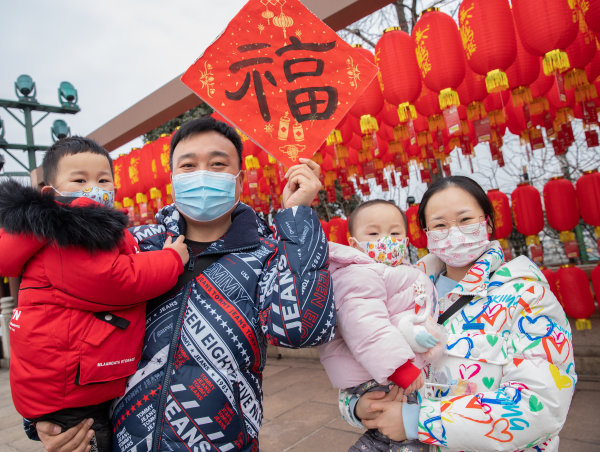 2月5日大年初五,一家三口在黄鹤楼公园旅游、赏景、拍照,享受快乐的节日。 城市摄影队 李云堤 摄
