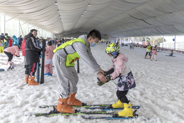 2月5日,在经开区军山新城“武汉趣味四季滑雪场,广大市民在这里开展热火朝天的滑雪运动,尽情体验冰雪运动的快乐。 城市摄影队 龚建国 摄