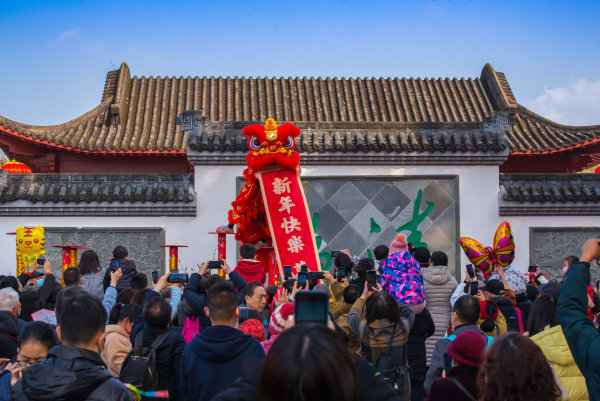 《舞狮表演》 2月4日 ,在东湖梅园,精彩的舞狮表演赢得现场游客的阵阵掌声,观众们争着拍照留念,增添了节日欢乐的气氛。 城市摄影队 骆汉明 摄