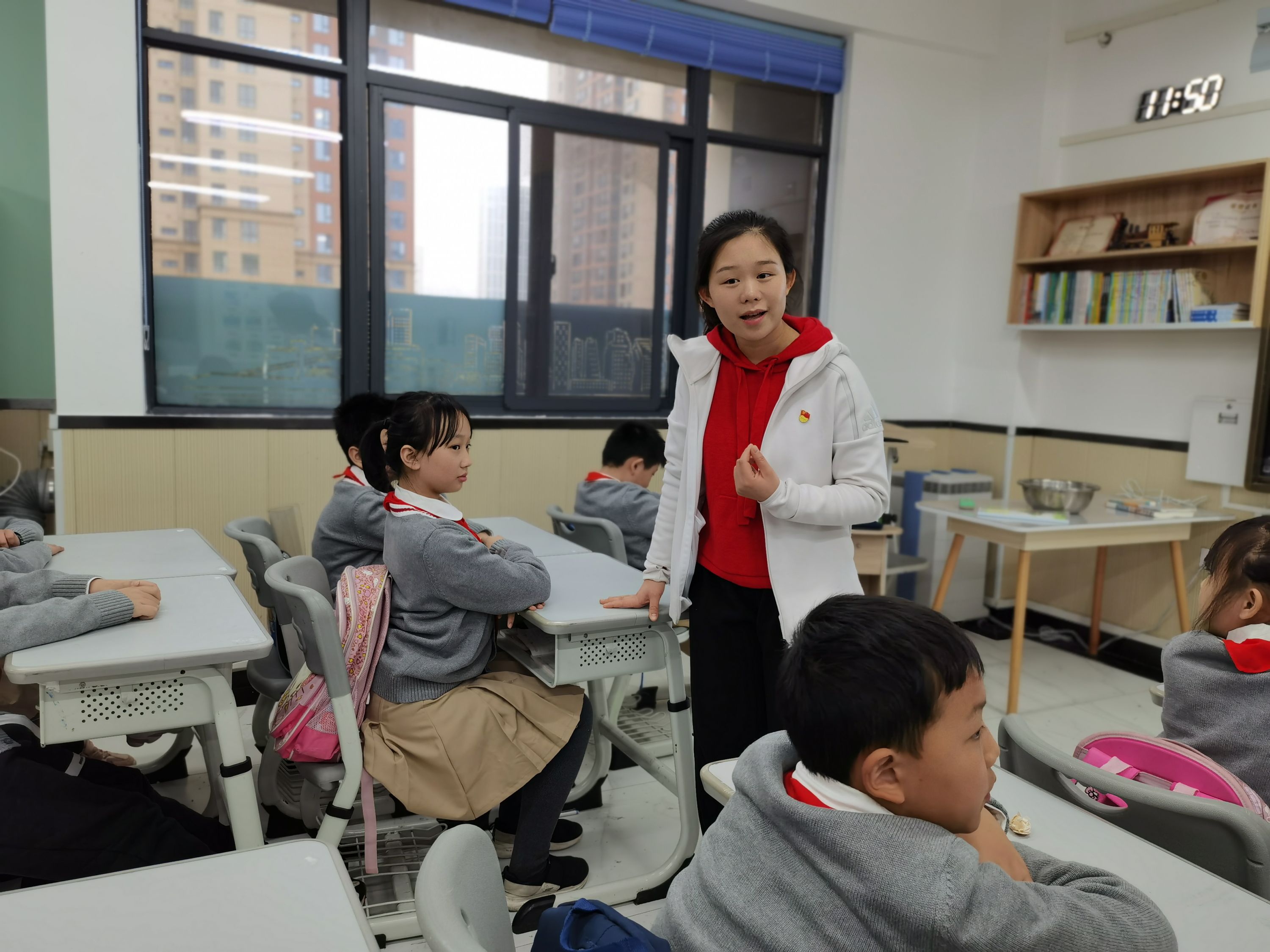 听了老师的介绍,同学们也纷纷举手。男生姚顺然说,他看到过扶贫干部上直播间帮农民“带货”,还知道社区组织过“团购”,帮助果农销售水果。“原来,我们全社会都用了这么多办法扶贫。”