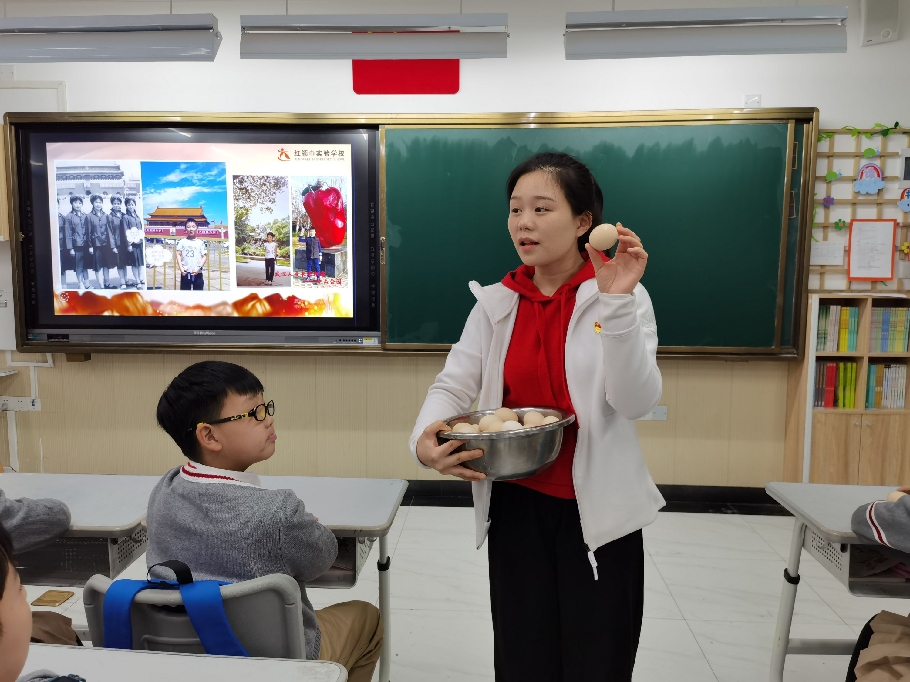“同学们,你们知道这枚鸡蛋是怎么来到我们手上的吗?”刘心悦提问了。有同学猜测,这鸡蛋是从超市买的,也有同学说是快递员叔叔送到学校的。