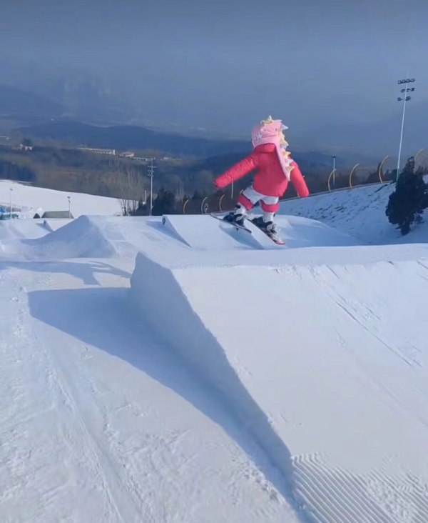 “和孩子一起滑雪很享受,看到她们从零到现在滑的那么好,自己很有成就感。最有意思的是,我在给多多拍视频的时候,她会一直给你挥手,一直在笑。”除了4岁的多多,张合凯还有一位7岁的大女儿一一,同样喜欢滑雪。