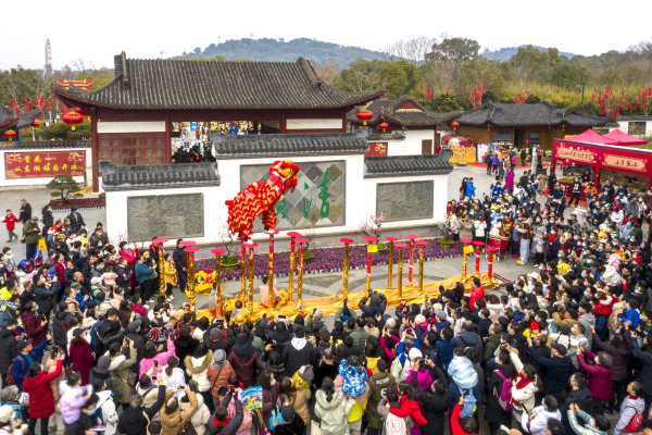 《梅园舞狮》,2月5日,东湖梅园,立春后的梅园春光明媚,梅花盛开。正月初五,前来梅园赏梅的游人络绎不绝,春节舞狮吸引了众多游客,人们与狮子互动打卡,欢声笑语,高潮迭起。 城市摄影队 龚建国 摄
