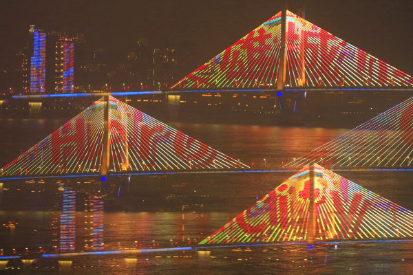 《英雄的城市》,1月30日,二桥武昌江滩,用多重曝光将中英文字集结在一个画面里,增加画面的形式感。 城市摄影队 孟刘虹 摄