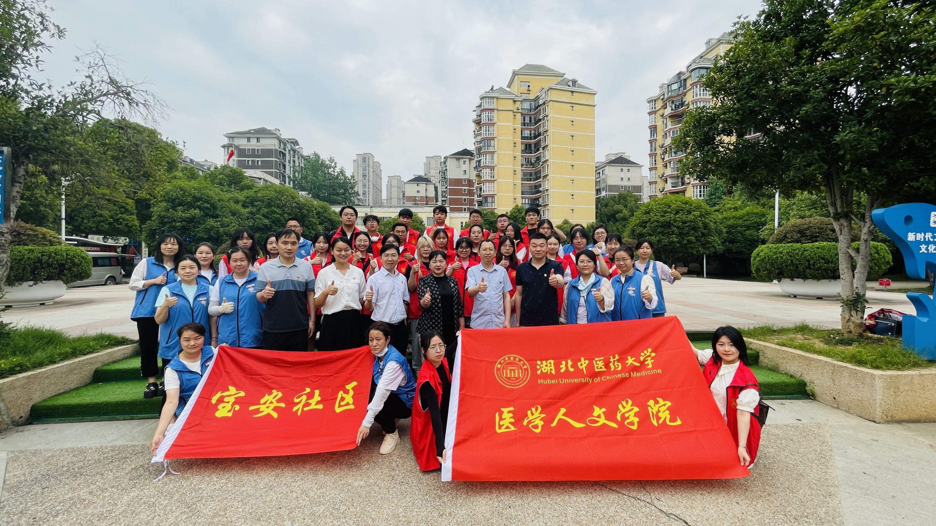 疫情期间下沉社区的湖北中医药大学医学人文学院“中医药文化宣传团”成员来到活动现场,为辖区居民提供中西医结合的完整系统保健和康复服务链。
