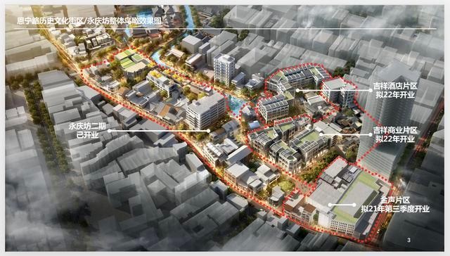 永庆坊二期是恩宁路旧城改造项目的重要部分,总投资约10.7亿元,用地总面积9.0万平方米,改造总建筑面积约7.2万平方米,其中修缮约3.6万平方米,复建约3.6万平方米,分示范片、骑楼片、粤博片、滨河片、吉祥片、金声片、多宝片、北岸片8个片区分阶段进行建设改造,整体计划于今年底前完成。