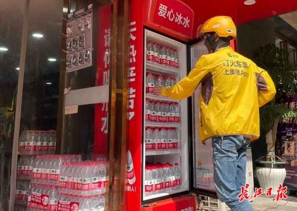随着天气越来越热,水的需求量越来越大,除了武汉经开区城管局、区文明办、沌阳街道等部门送来的水,于晓娜和丈夫司东亚也自费购买了不少水,保证爱心冰柜每天“不断供”。