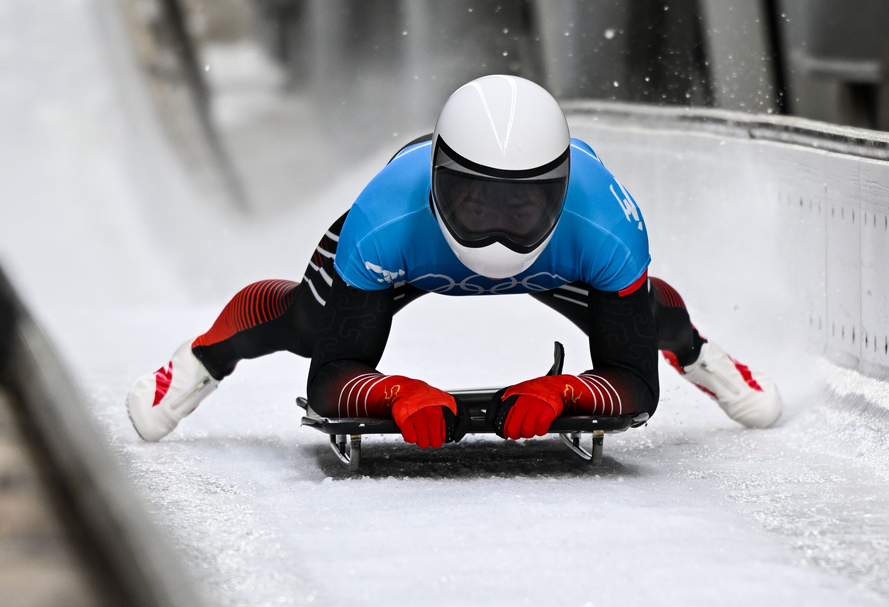 殷正倒数第七个出场,他以4秒58刷新了赛道出发纪录,可惜他的体重偏轻,影响最终成绩。钢架雪车选手需要一定的体重来为滑行提供重力加速度,顶尖运动员看起来都很壮。不光是殷正,获得第三名的闫文港和德国选手格罗赫尔相比也“嫌苗条”。