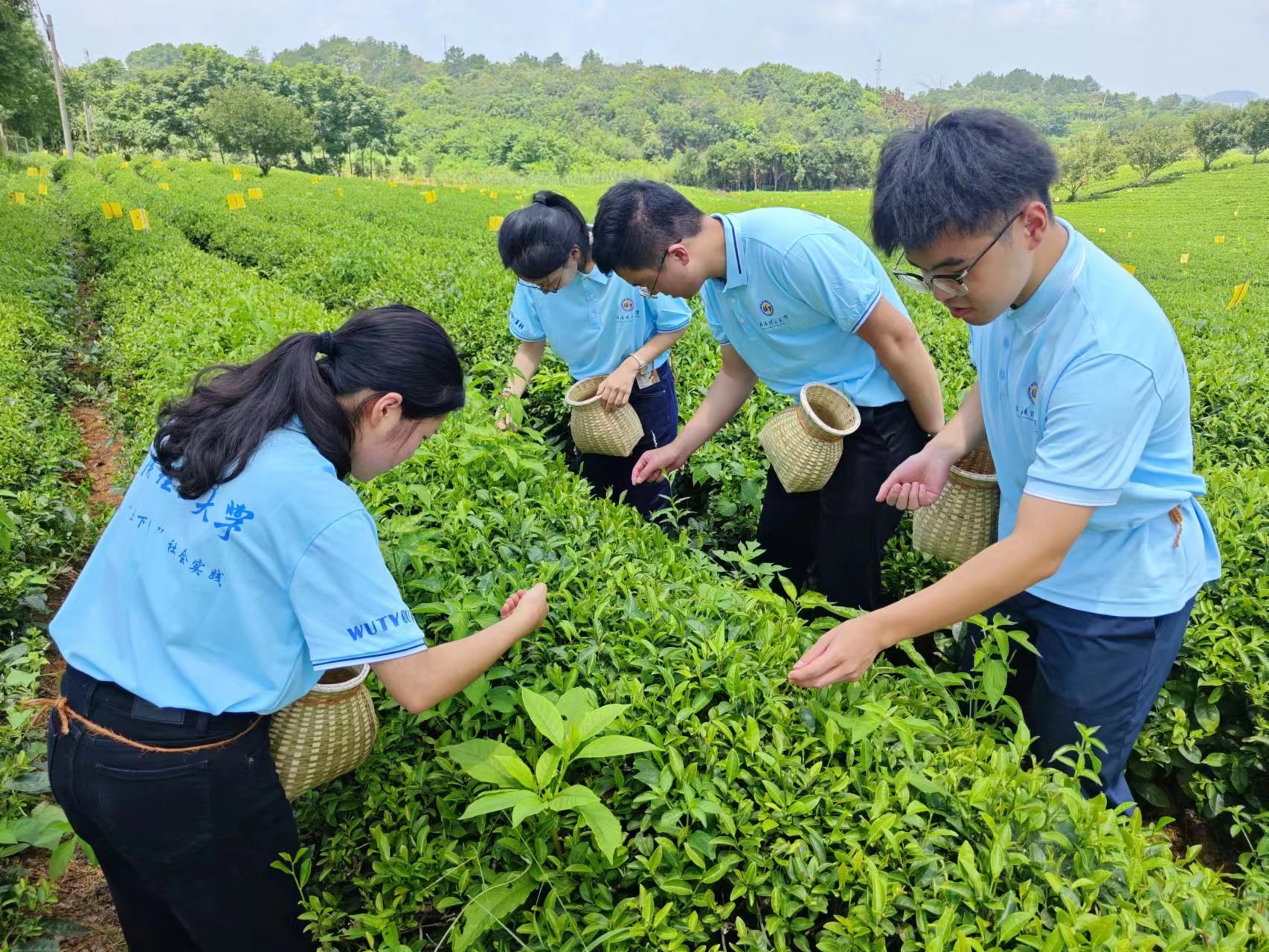 炎热夏季,学生们来到田间地头,与茶农交谈,和他们一起采茶。“眼下正是盛夏时节,没有像清明前后采摘春茶那么忙,出芽率那么高,但一天下来,也可以采个大几斤,赚个百余块呢!”群建村村民、具有20多年采茶经验的张大姐乐呵呵地说。
