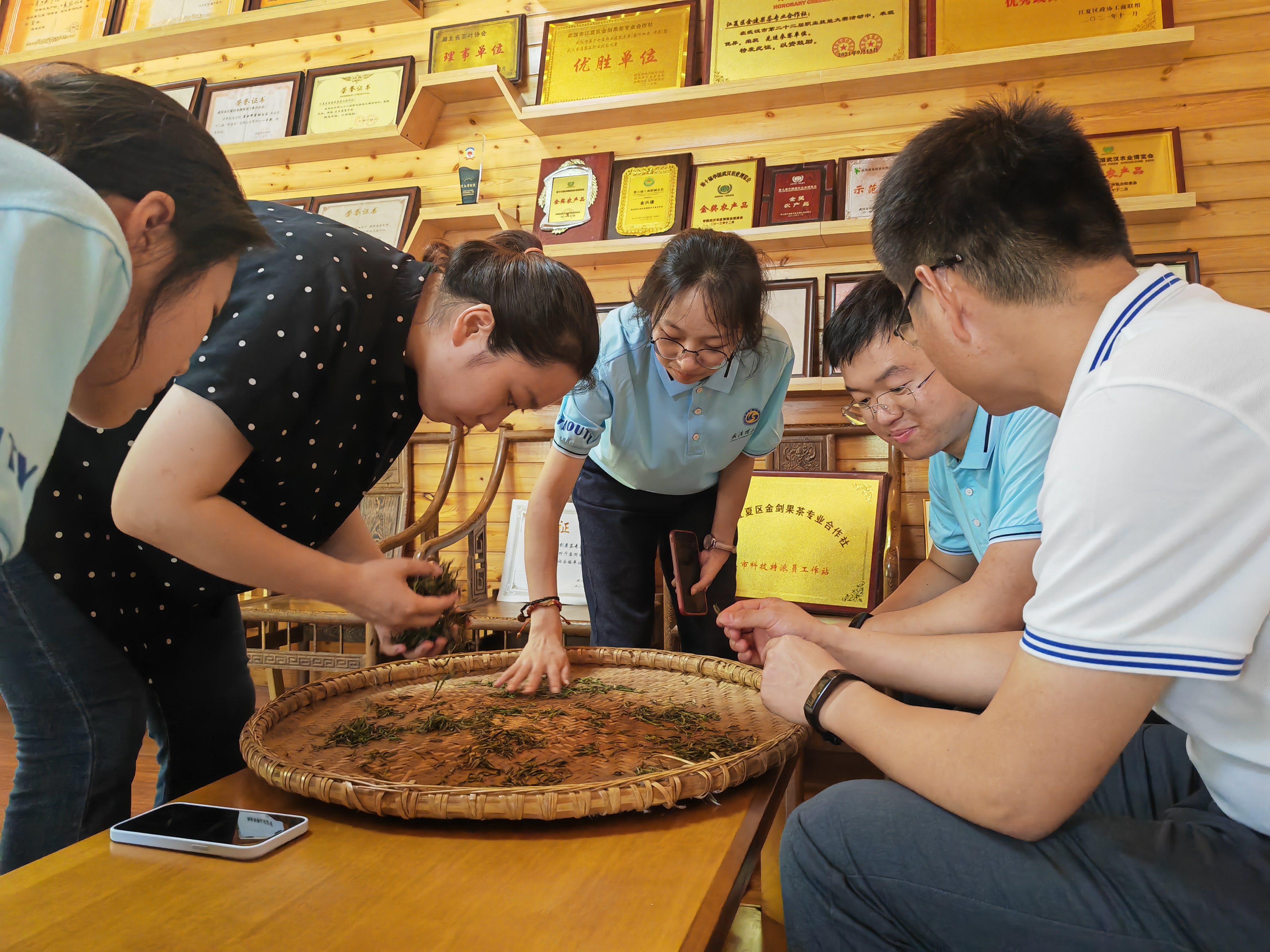 据了解,武汉理工大学“青力青为 共建美丽新村”社会实践队由7年茶学研学经历经历、武汉理工大学船海与能源动力工程学院团委书记宋晓维老师担任指导老师,邀请华中农业大学朱珺语博士共同走访武汉市新洲区、江夏区两家典型助农茶企,调研学习绿色“小”茶叶在乡村振兴中的“大”作为。