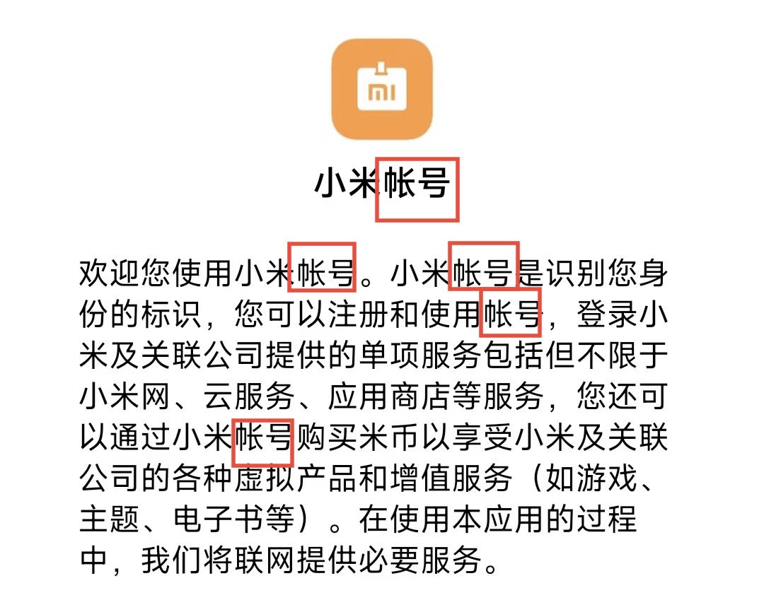 小米账号登录系统存在错误使用“帐号”的情况。