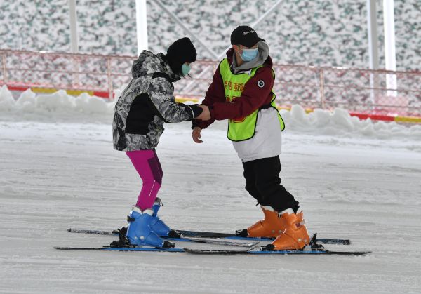 一个小时的体验活动延长到11时才结束,大家玩得满头大汗。在雪道终点前的大屏幕上,正播放着北京冬奥会的比赛,终于滑到终点的王女士开心地说:“运动量挺大的,我们与北京冬奥会来了一场隔空邂逅,和奥运健儿一起感受冰雪运动的速度与激情。”