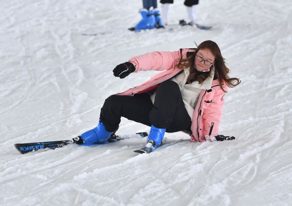 踏上雪场,连摔跤都这么欢乐。长江日报记者喻志勇 摄