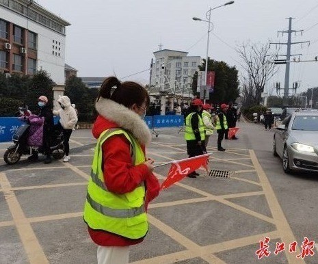 长江日报大武汉客户端2月16日(记者刘嘉)16日上午7:20,武汉盘龙城经济开发区第一小学门口,除了有老师、保安迎接孩子们入校,还有8名家长志愿者,也在帮忙疏导校门前交通,引导学生有序入校。
