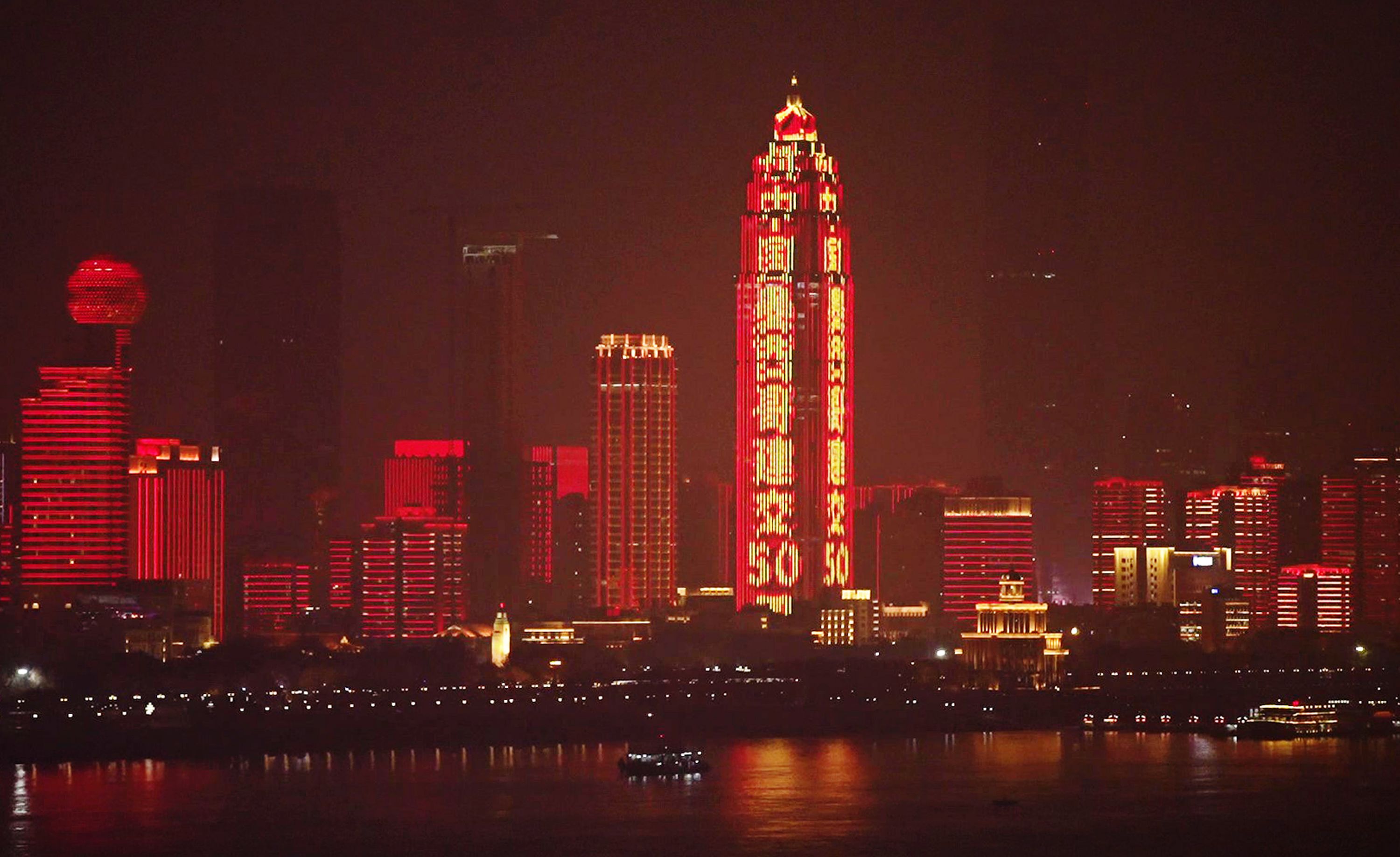 February 14 marked the 50th anniversary of the establishment of the diplomatic ties between China and Mexico. A light show was rolled out on the same day to show their deep relationship. The show displayed slogans such as "Congratulations on 50th Anniversary of China-Mexico Diplomatic Ties" in colors deriving from the national flags of the two countries, which lit up landmark buildings along the Yangtze and Han rivers, attracting many people to take photos.
