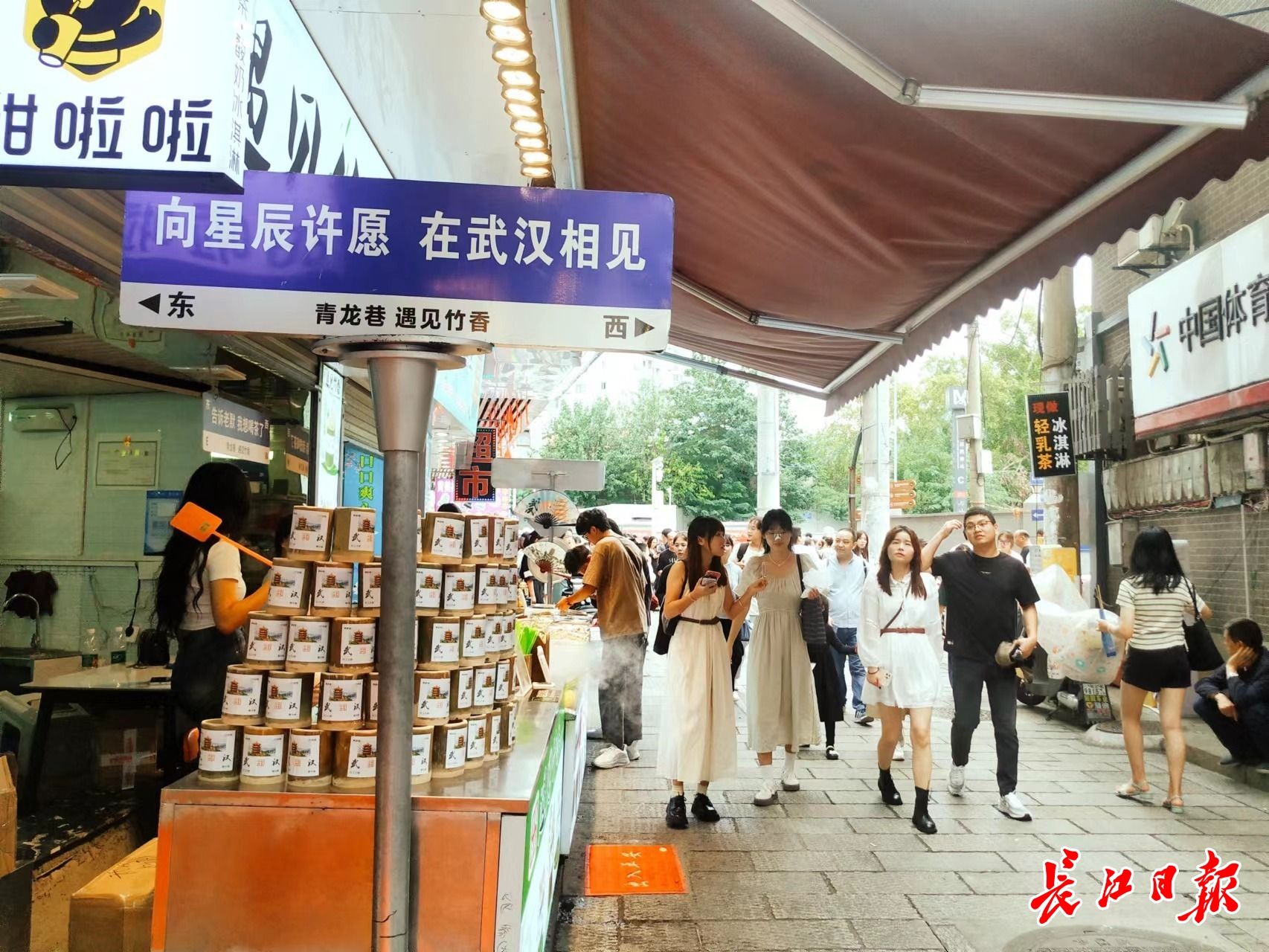 汇聚了丰富美食的户部巷、粮道街、青龙巷、大成路离司门口黄鹤楼站比较近,从早到晚都是游客寻味好去处。记者发现,国庆假期前半个月,青龙巷上新了许多美食店、文创店、礼品店,游客穿梭其间,仿佛在赶一场盛会。来自上海的刘女士点赞青龙巷:“店铺鳞次栉比,视野中几乎都是年轻人,充满活力,抬头能看到居民楼,又有武汉人生活的味道,热闹又舒适。”