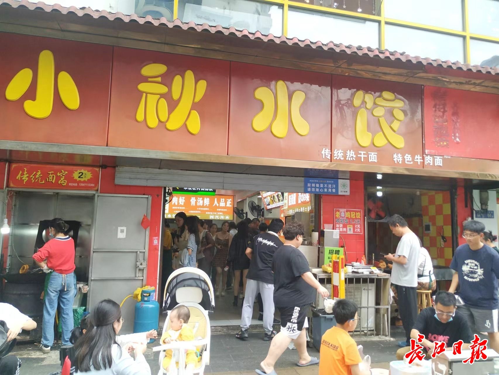 大成路小秋水饺店前人来人往。记者程佳怡 摄
