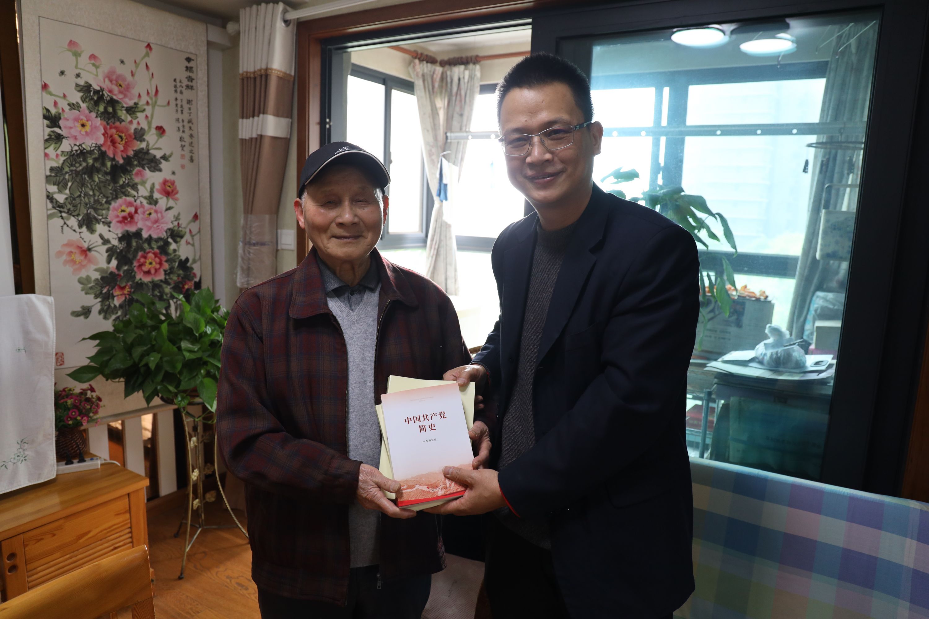 16日,中国一冶武建院为谢万丁老人送去党史学习资料。通讯员张颖 提供