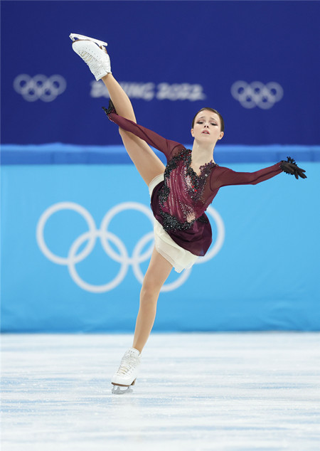 2月17日,俄罗斯奥委会选手安娜·谢尔巴科娃在比赛中。 新华社发