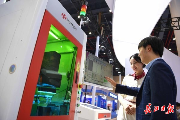 在华工科技展台前,国内首套三维五轴激光切割机、半导体晶圆切割设备、行业首个智能备料中心项目……这些聚焦激光加工、半导体和智能制造的最新产品和解决方案,吸引了不少观众的注意力。