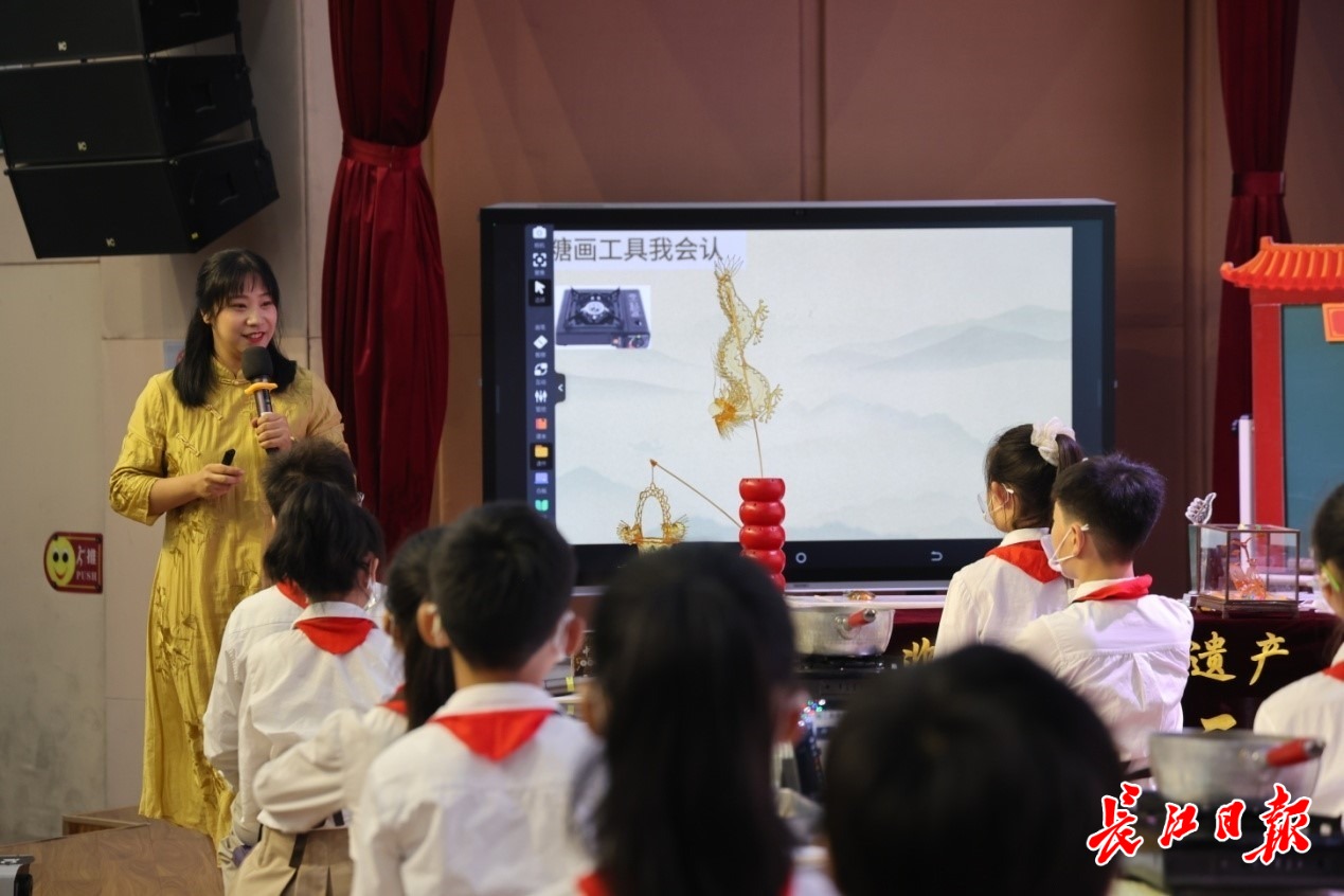 武汉经济技术开发区新华小学陈莉老师执教《中国糖画》,将非物质文化遗产的保护与传承和现代创新思维的发展与实践结合呈现。课程通过生活情境激发学生对于糖画制作的兴趣,邀请非物质文化遗产糖画传承人走进课堂,讲解关键制作技巧,形成“双师”课堂,让学生在劳动实践中树立正确的劳动观念。