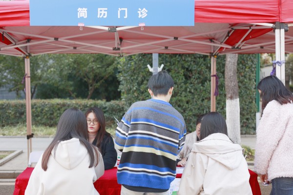 为了方便学生们更好地投递简历、快速找到心仪工作,招聘会现场设立了“就业服务区”。洪山区委组织部、洪山区人力资源局、洪山公安分局等单位的工作人员向大学生推介武汉安居落户、就业创业等方面政策。此外,武汉工商学院还设立了“简历门诊”展位,指导求职学生完善简历,挖掘、整合自身优势,针对目标岗位更好地推介自己。
