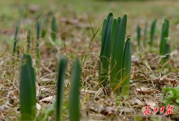 水仙的幼苗从土里钻了出来。