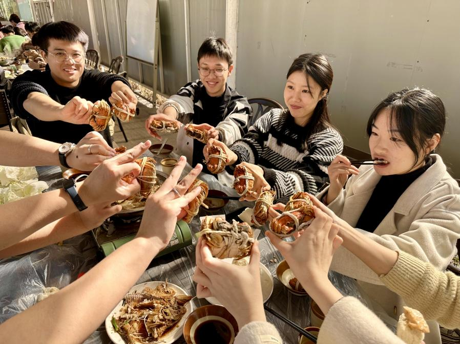 11月21日中午,该校桃园广场热闹非凡,生命科学与技术学院2021级医学检验技术本科1班的同学们手持“品蟹券”,现场领取了90余只热气腾腾的清蒸梁子湖大闸蟹。