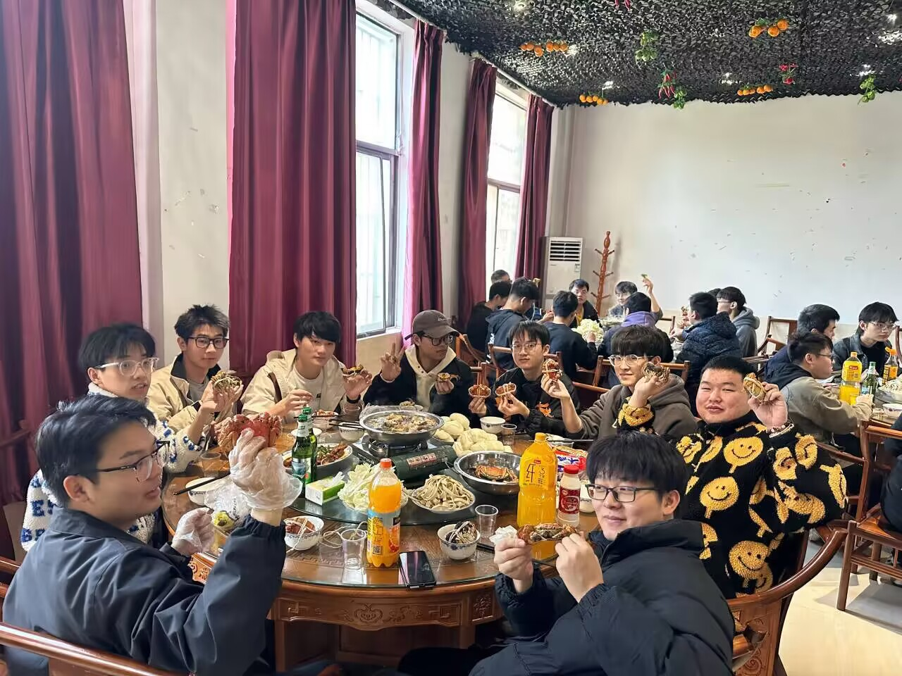 同一时间,在该校生活艺术楼,各学院2024届毕业生在烹饪教室精心烹饪了红烧武昌鱼、清蒸大闸蟹、胖头鱼火锅等湖北特色水产美食,畅叙同窗情,感念师恩。