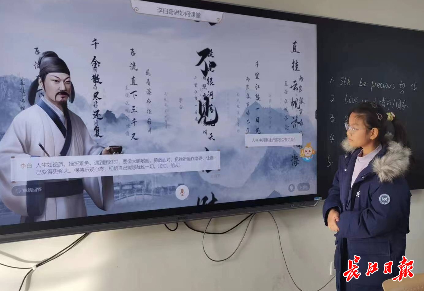 “这8位‘先贤’作出的回答,符合人物身份与风格,其中涉及的历史、文学、科学知识,也都来自真实的史料和文献,给予学生很多积极、正向的鼓励。”六(1)班班主任赵丽说,课间里,孩子们喜欢问“爱因斯坦”“图灵”一些科技类问题,“先贤”答案中常常有些专业术语,孩子们很感兴趣,会记下来回家继续搜索、学习。课后服务时间,大家还喜欢跟“李白”玩对诗,比拼谁的诗词储备多。遇到生活中的烦恼和难题,他们也愿意问问“诸葛亮”“海伦·凯勒”的看法。有学生就“怎样将坏事变成好事”请教“鲁班”,“鲁班”讲述了自己发明“鲁班桥”的故事,告诉同学们如果没有洪水淹没的糟糕经历,他就不会研究发明“鲁班桥”,并启发学生们不怕困难,开动脑筋,不断进步。