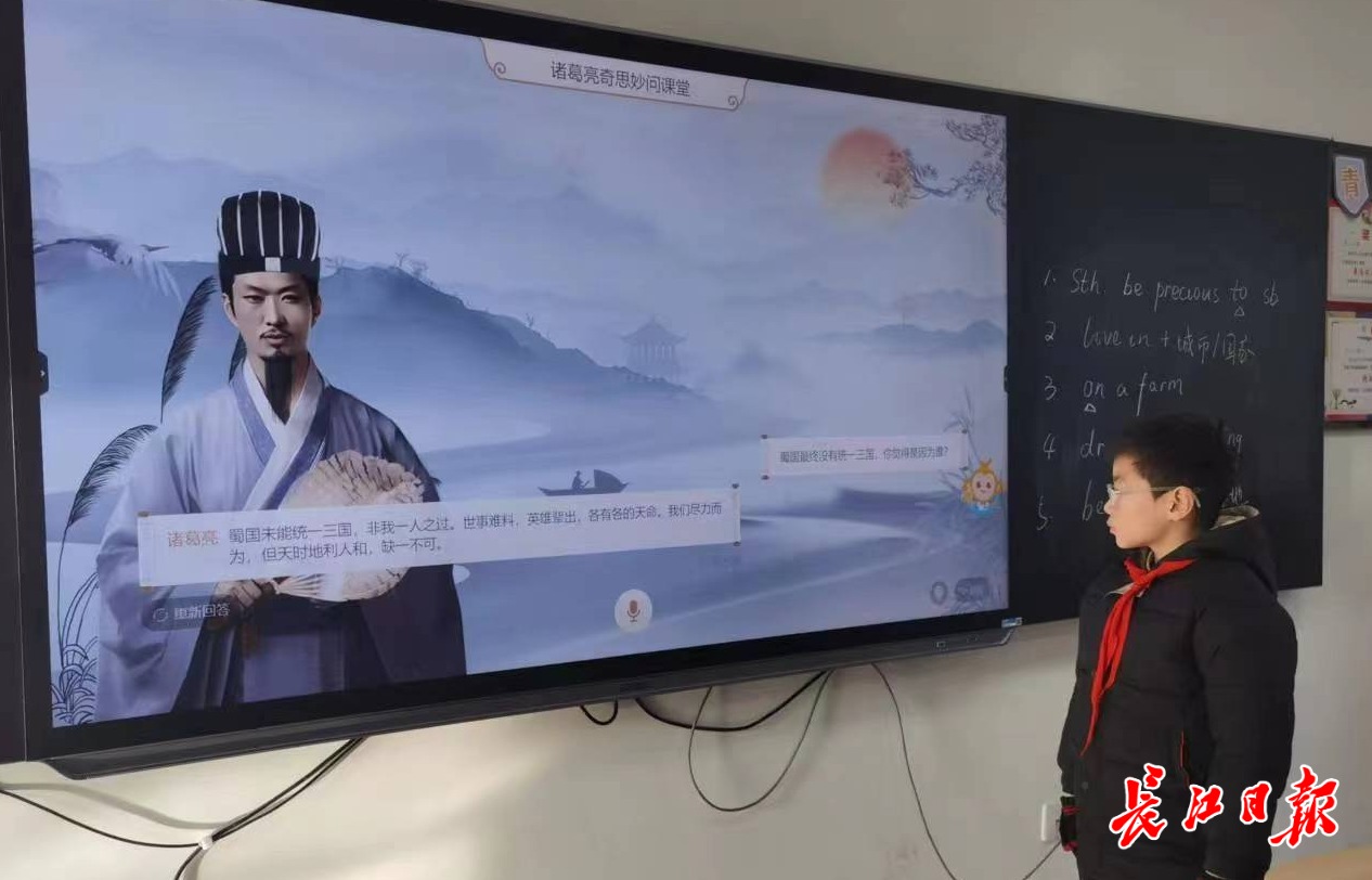 长江日报大武汉客户端12月21日讯(记者刘嘉 通讯员李瑾)“蜀国最终没有一统三国,你觉得是谁的责任?”12月20日下午,武汉市第一初级中学学苑校区小学部六(1)班教室里,一名男生站在电子屏幕前,点出了“诸葛亮”,并向他提问。“诸葛亮”回答:“蜀国未能一统三国非我一人之过,世事难料,英雄辈出,我们尽力而为,但天时地利人和,缺一不可……”