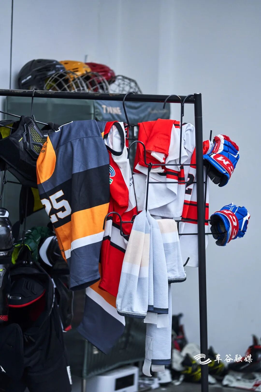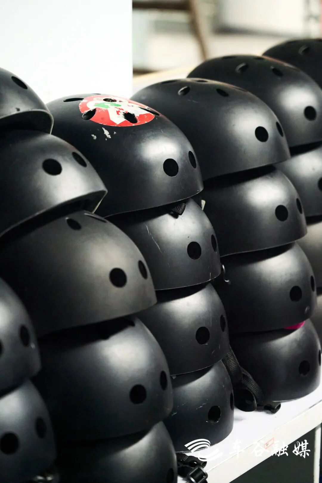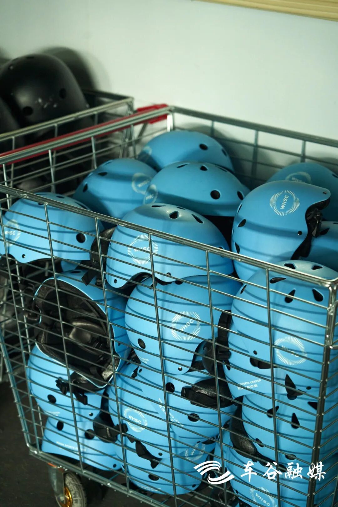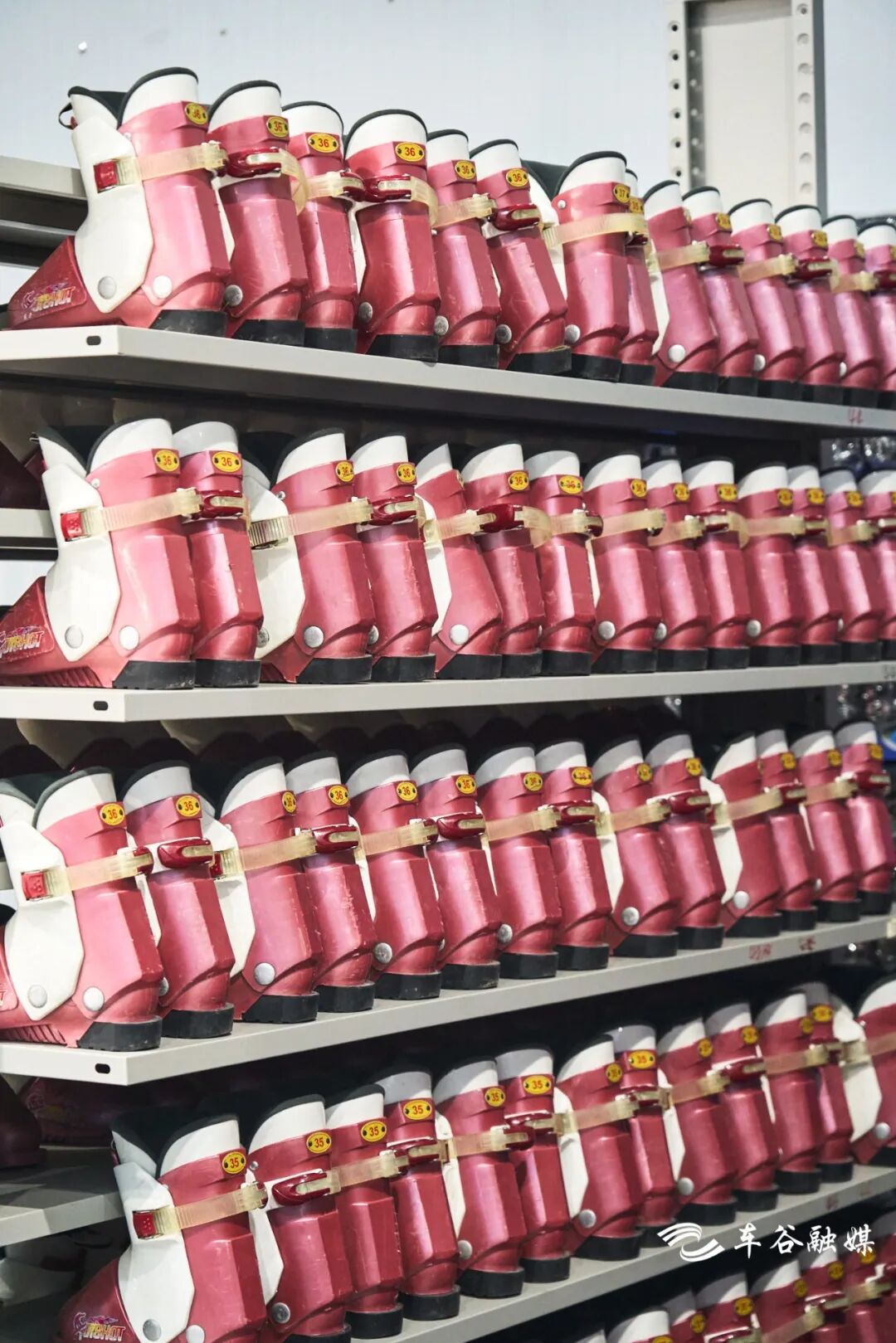 左手边就是装备区啦,负责雪板的发放回收,头盔、滑雪服、护具护臀护膝一应俱全。工作人员在旁边随时待命,有任何问题可以向他们寻求帮助。