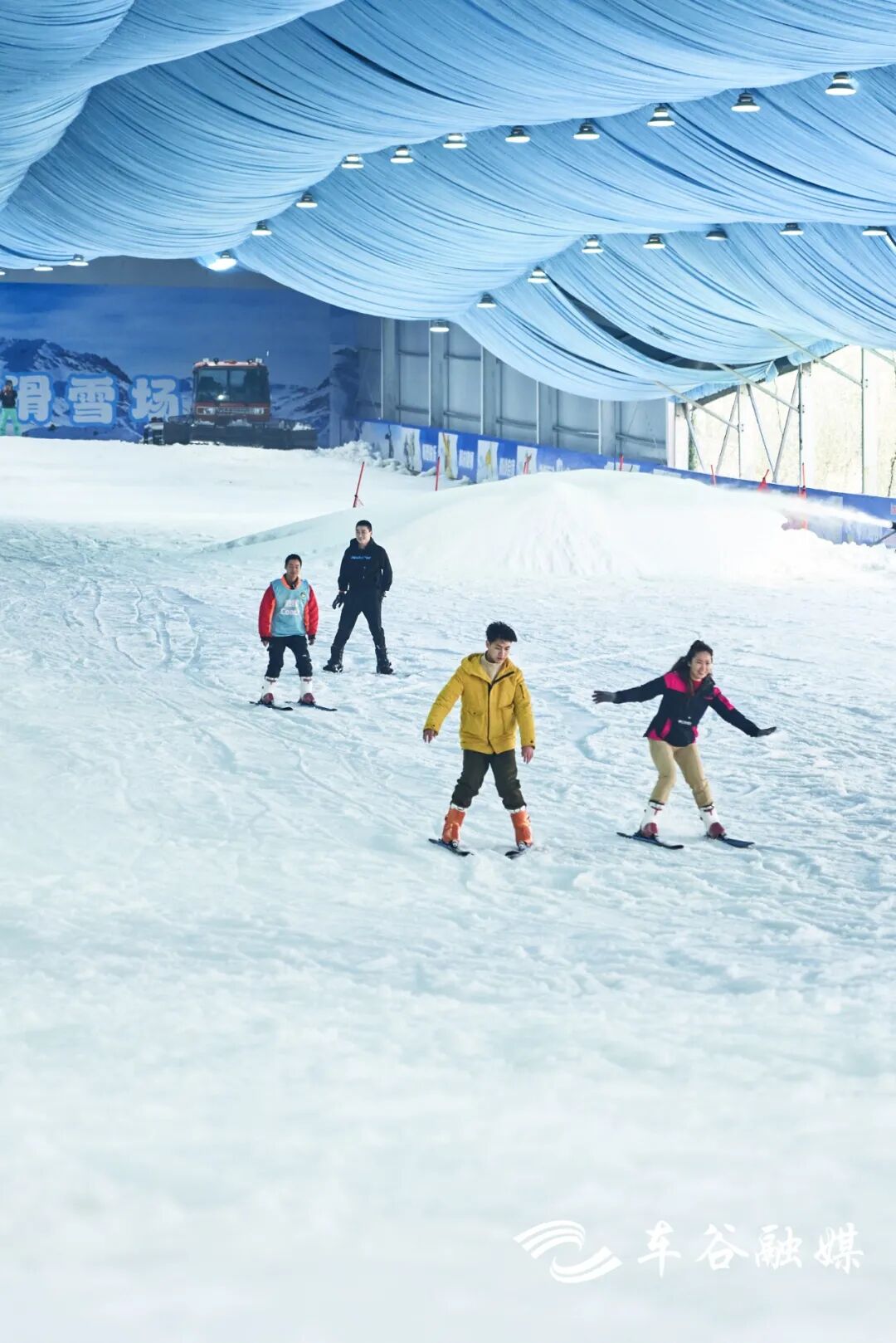距汉口市中心仅30分钟车程,中润趣谷四季滑雪场总面积约为1万平方米,达到了运动初级赛道的规模。