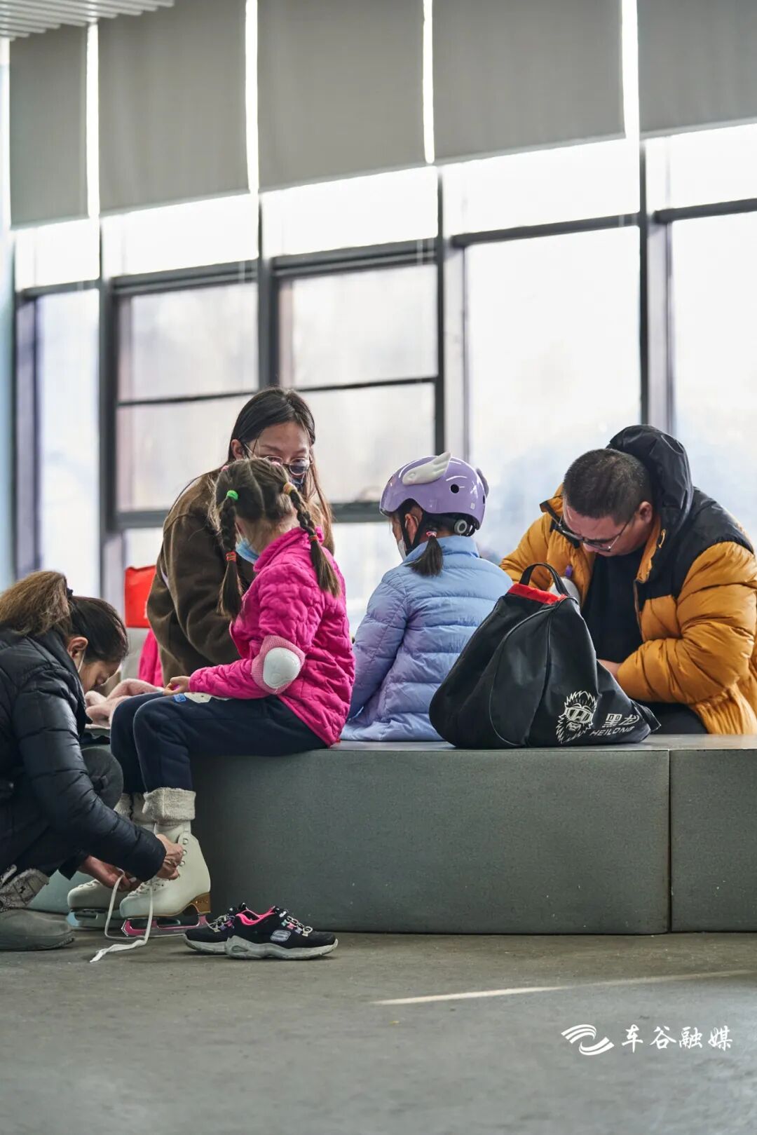 来这里不需要跟着导航转圈到处找,从体育中心A口出去,左前方就是冰上运动中心。