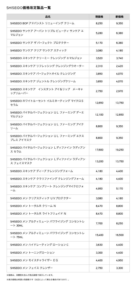 资生堂日本官网调价公告。