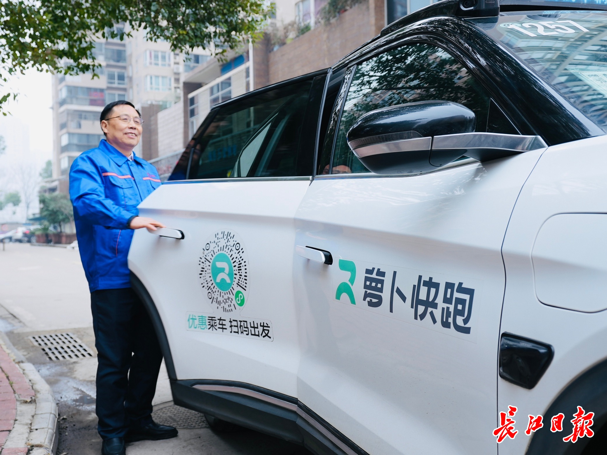 28日,李兴华拉开一辆无人车的车门准备过杨泗港长江大桥。 记者高文举 摄