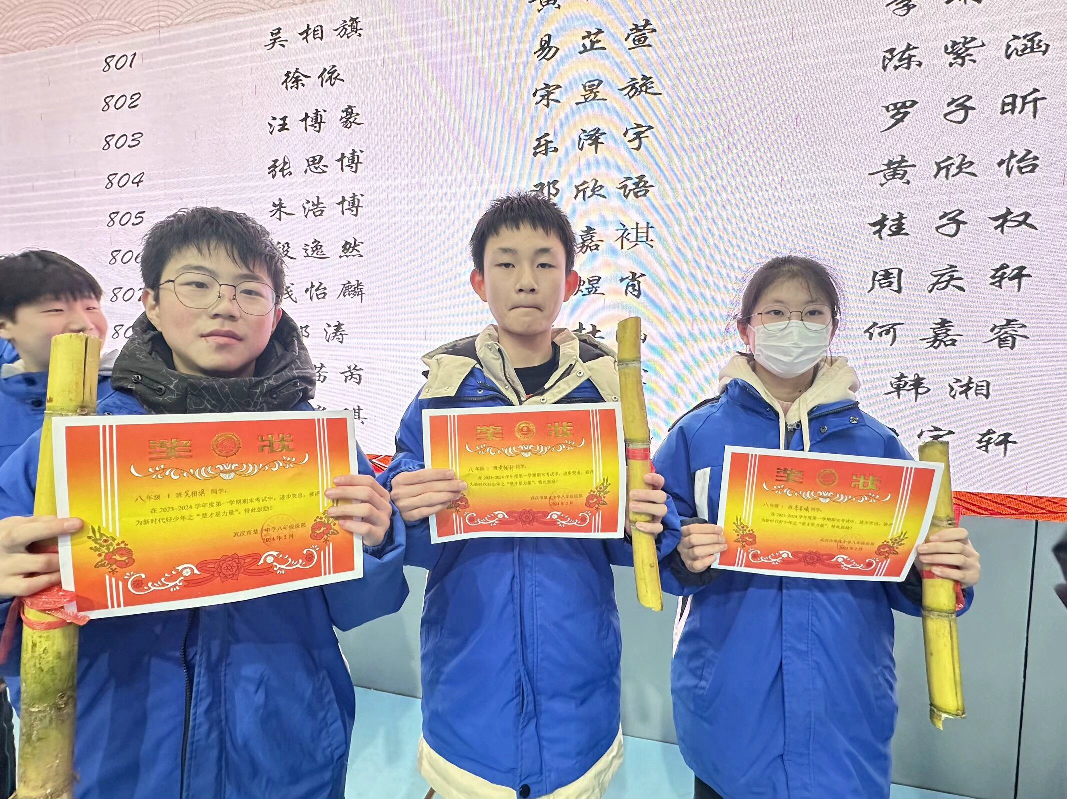 长江日报大武汉客户端3月2日讯(记者杨幸慈 通讯员胡蝶)一刀猪肉、一条鲫鱼、一把芹菜、一根甘蔗……3月1日,武汉市楚才中学对八年级一批学习刻苦、进步较大、成绩突出的同学进行表彰。有趣的是,颁奖典礼像是打年货,场面喜感十足,深受学生们喜爱。