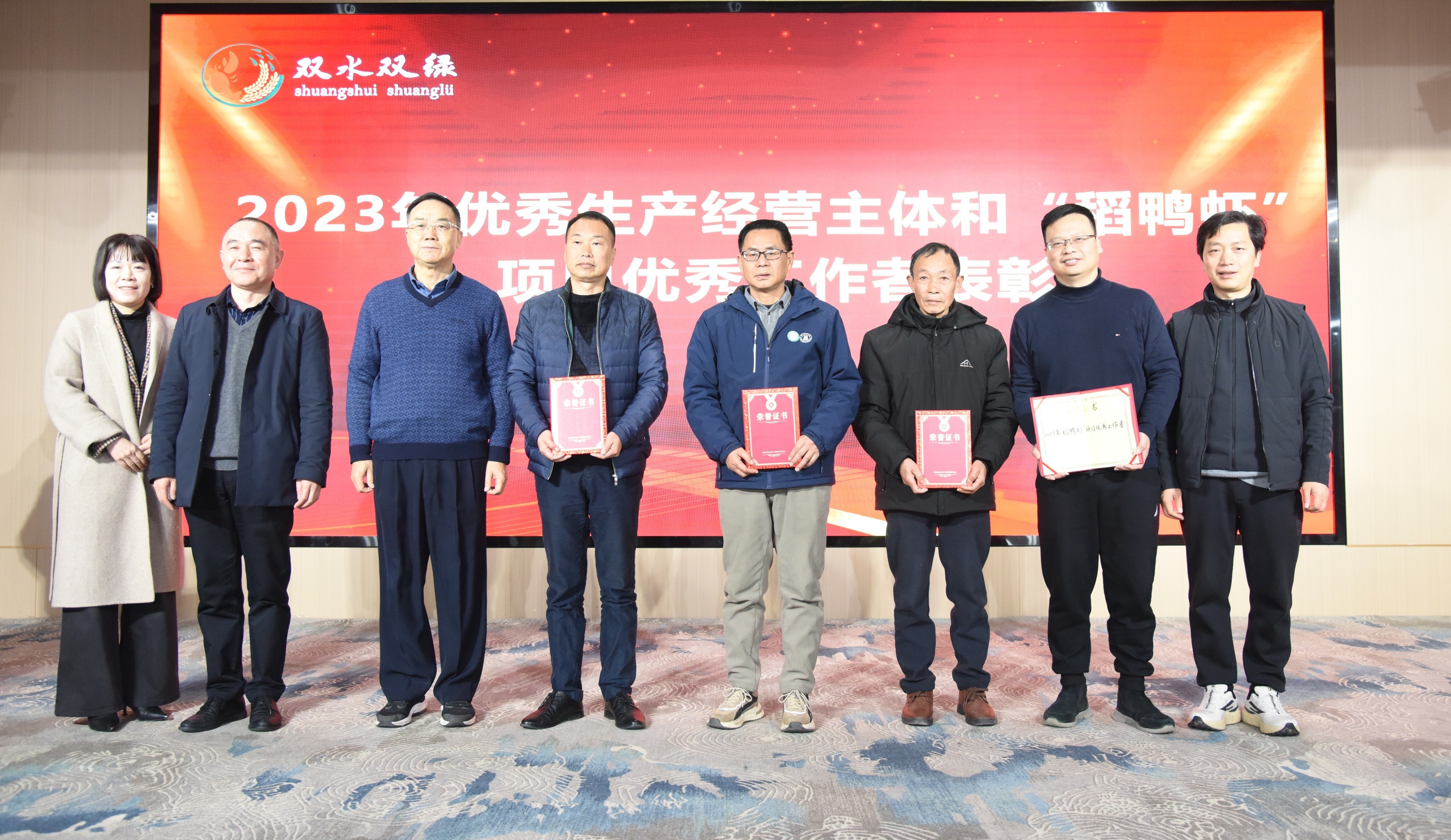 一季黑米稻,一茬小龙虾,间隔一波大肉鸭,华中农大教授、“双水双绿”公司董事长顾泽茂向从各地赶来参加培训的种粮大户介绍说,三月投放虾苗,六七月插稻、放鸭苗,鸭子为水稻除虫除草,水稻为鸭提供绿阴、食物,为虾子提供食物、秸秆,鸭虾为水稻粪便肥田,“稻-鸭-虾”模式一季三收,不打农药,不放鱼药,精准施肥,精准投喂,实现了水稻和水产的绿色种植养殖。