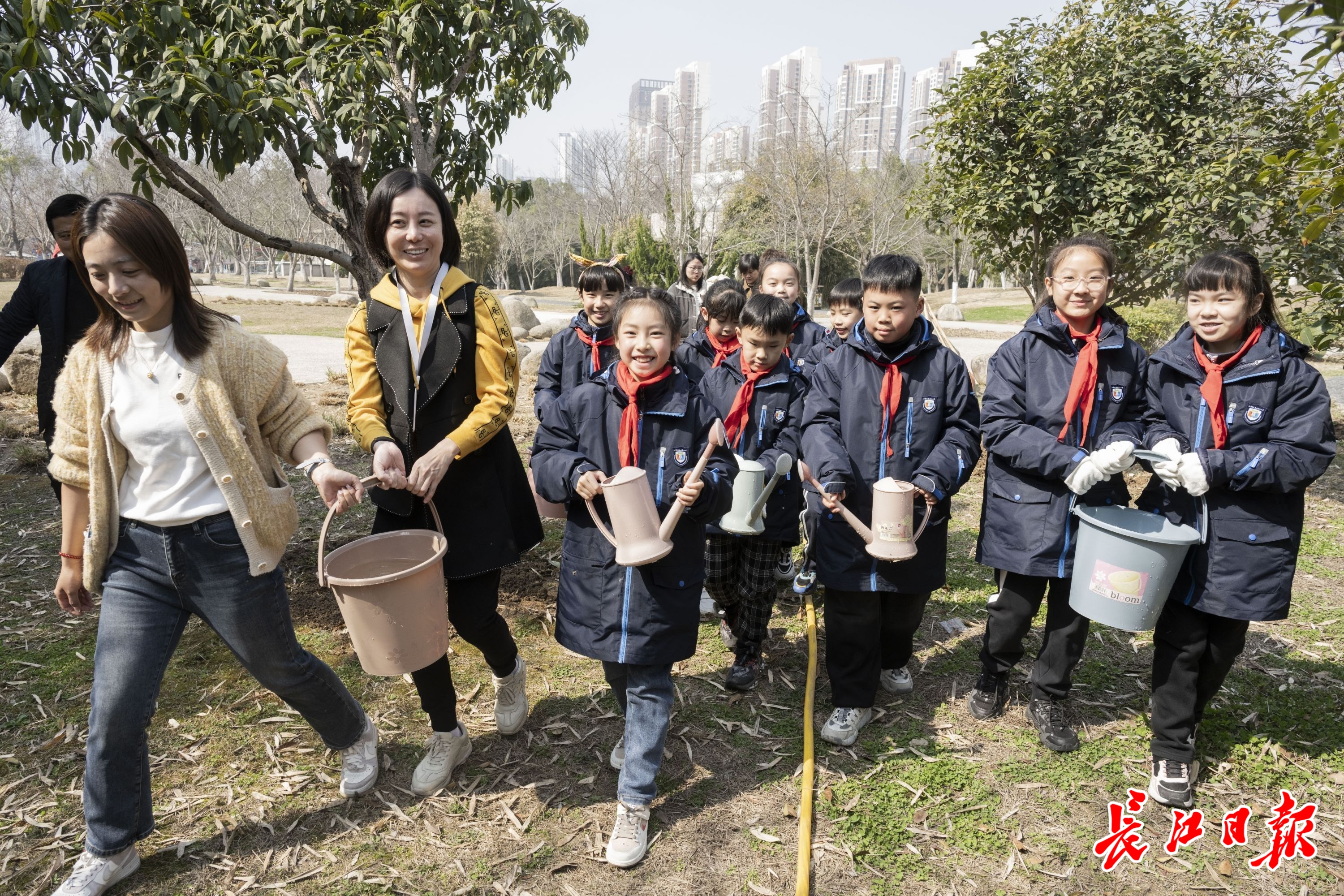 3月11日上午,江岸区长春街第三小学师生来到堤角公园义务植树。记者金思柳 摄