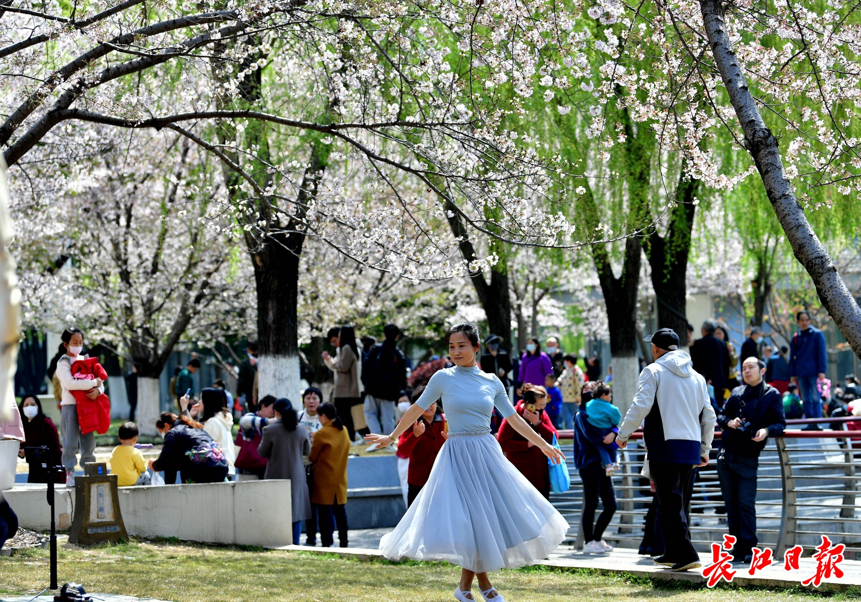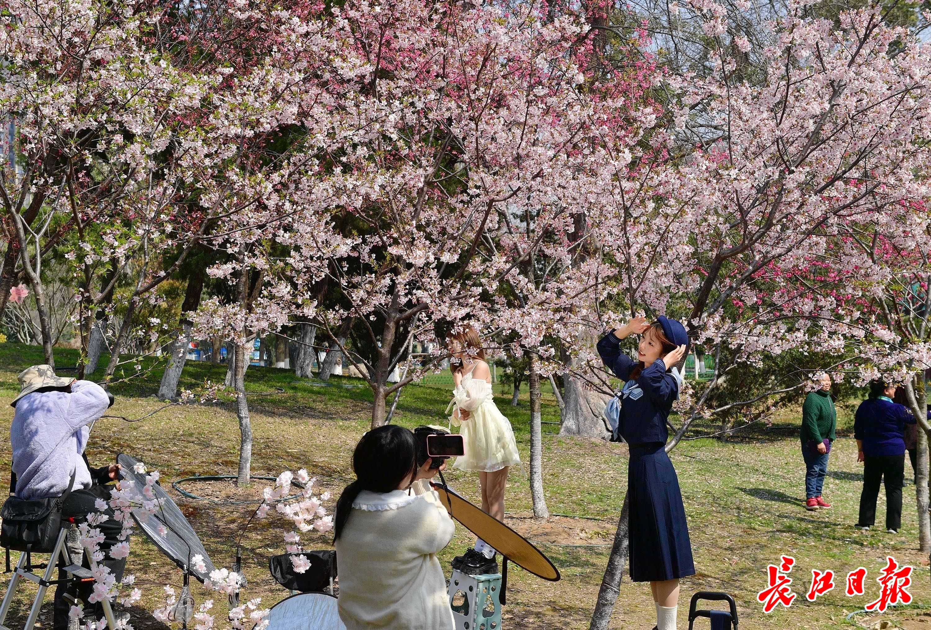 3月11日,堤角公园里春意盎然,打扮精致的“小姐姐”带着专业摄影师和道具,在樱花树下留下最美的瞬间。记者李永刚 摄