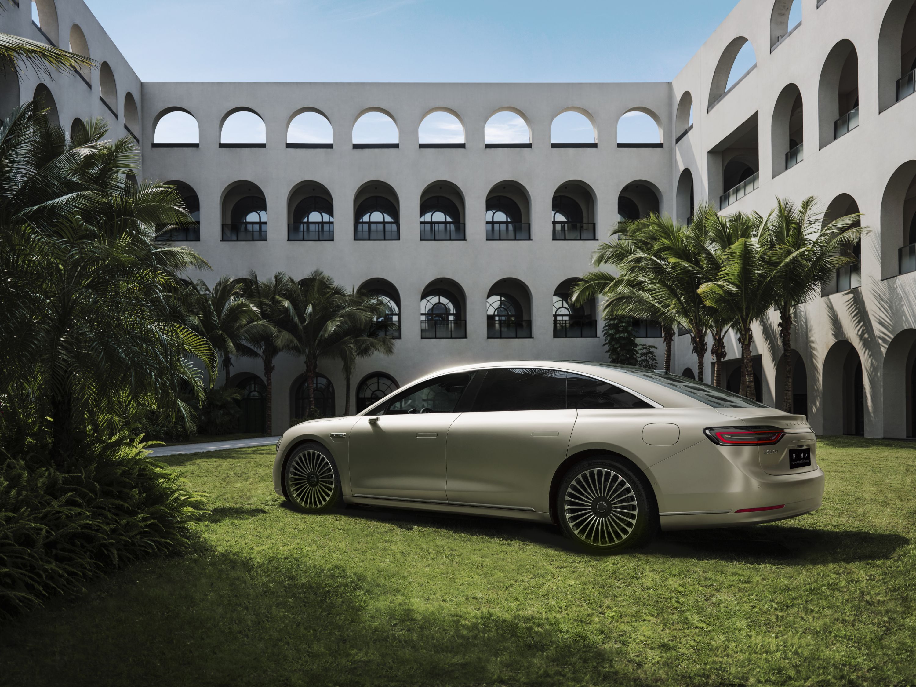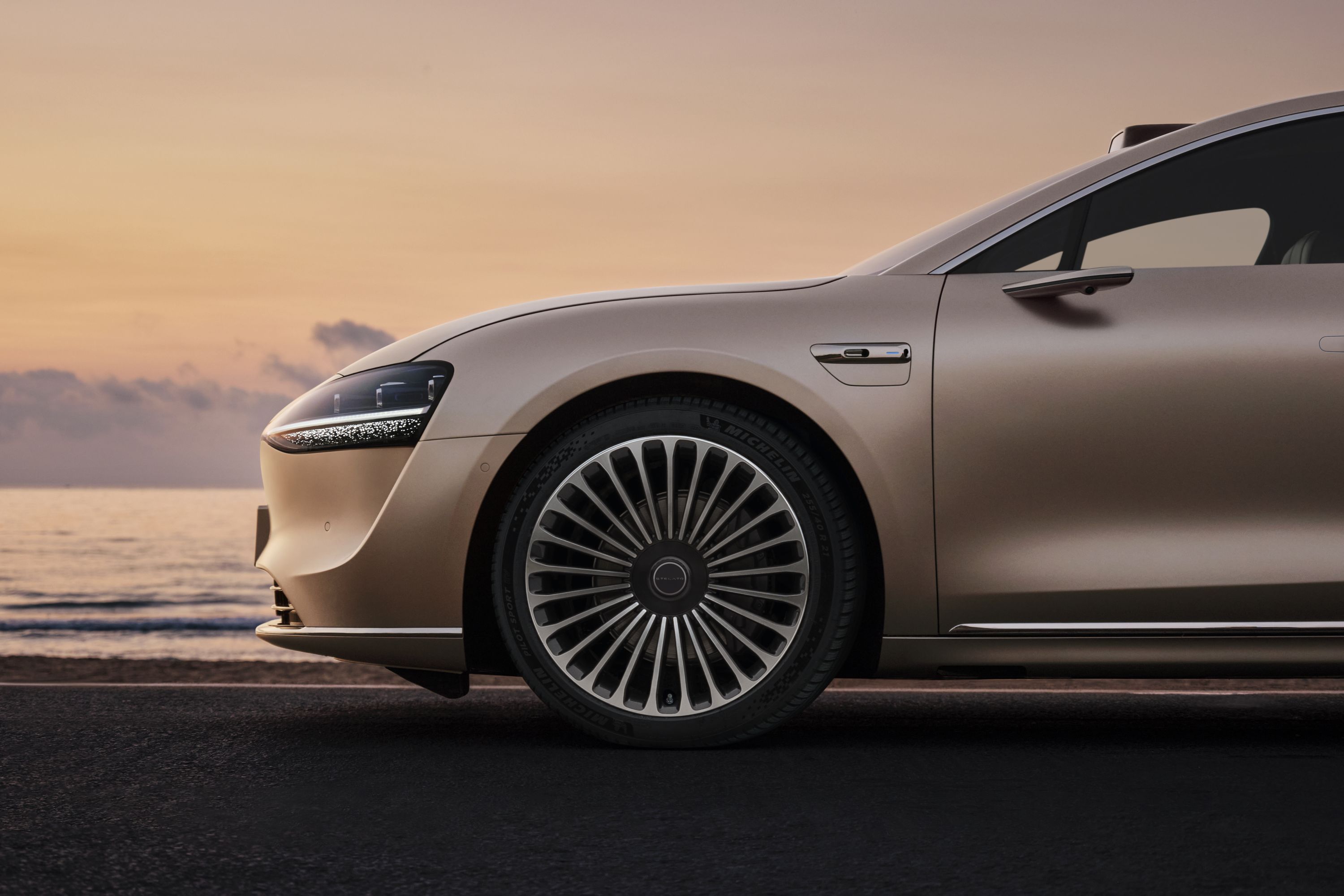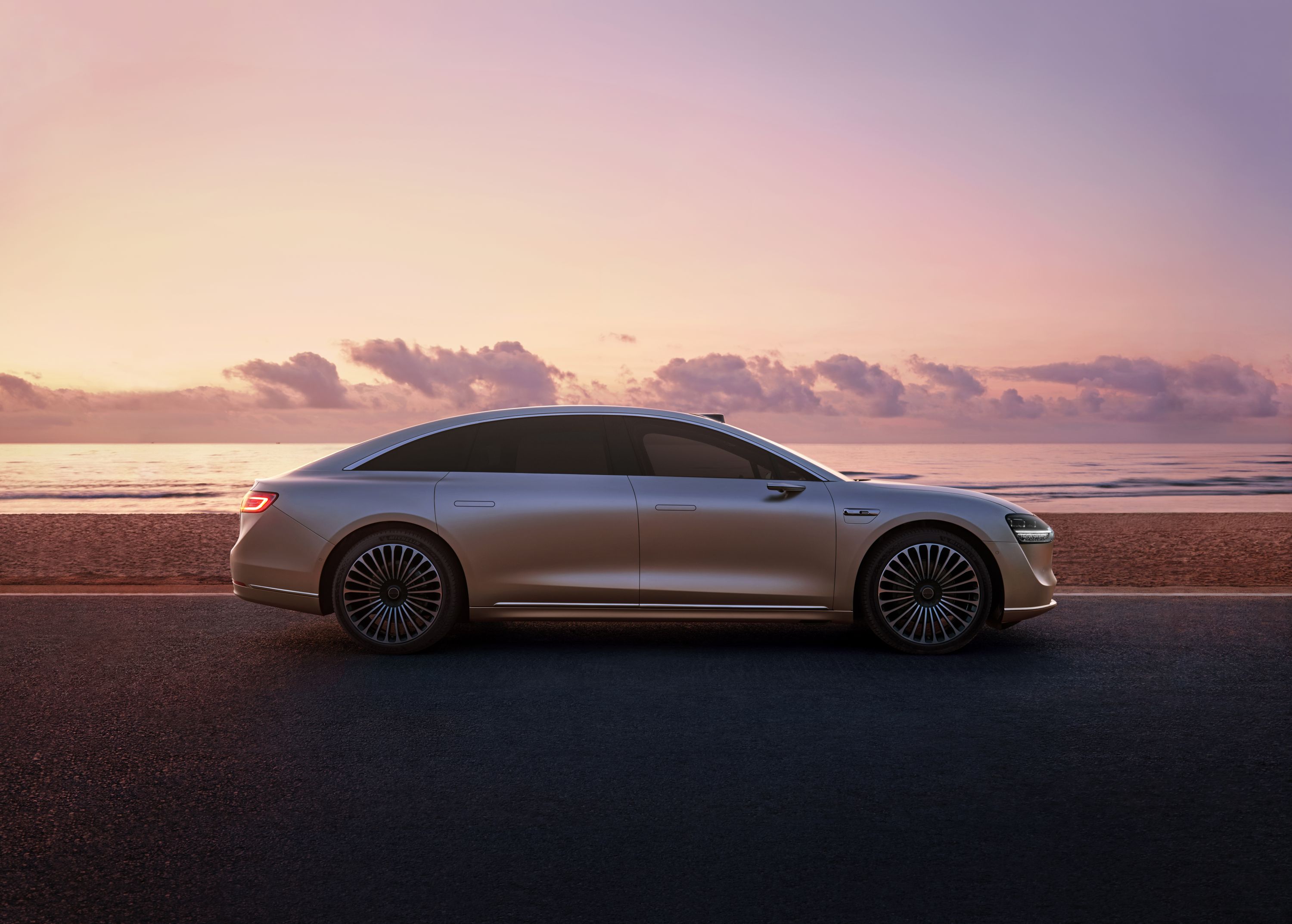 华为与北汽联合打造的纯电轿车享界S9侧面图。