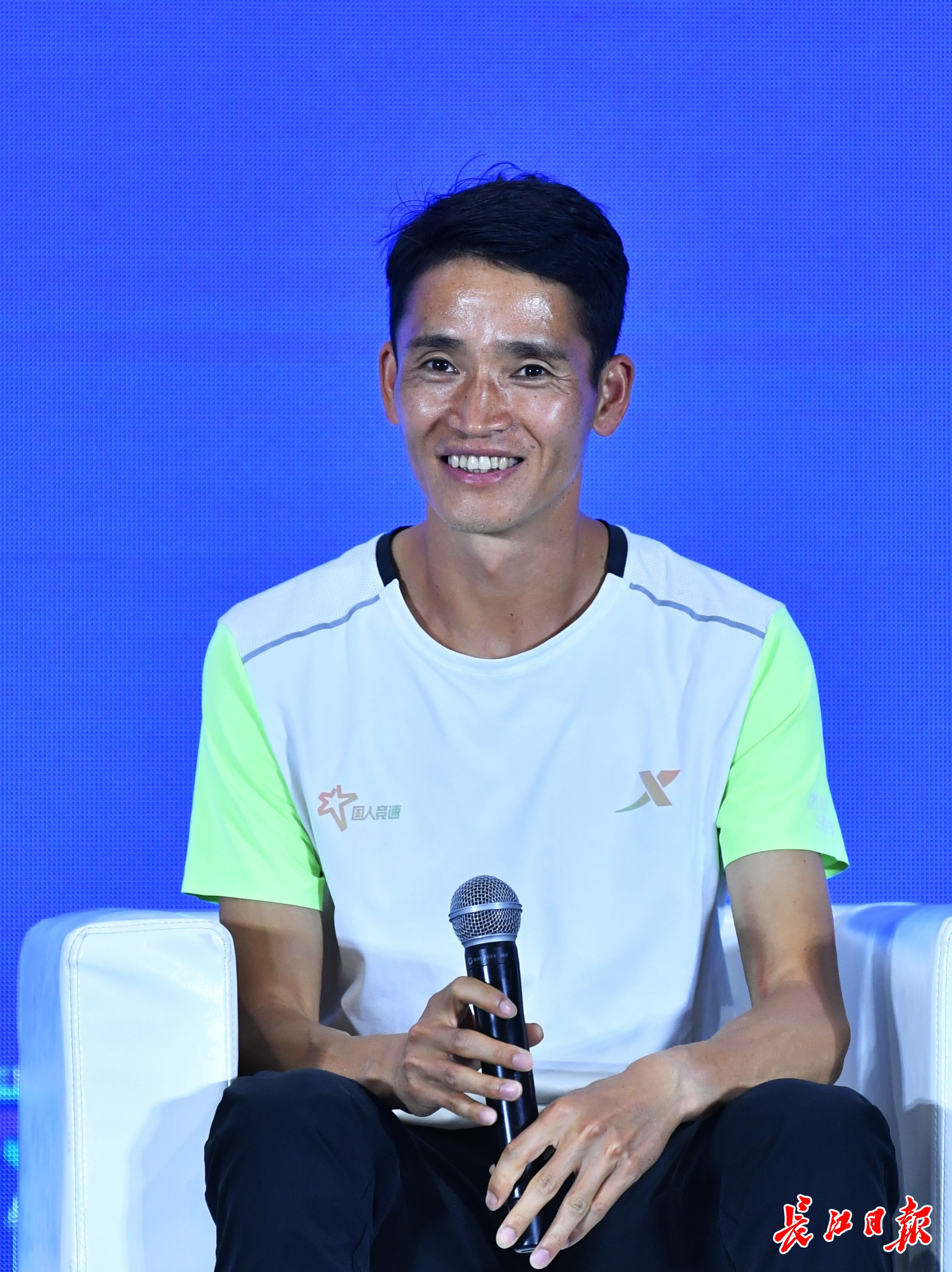 3月22日下午,杨定宏在2024武汉马拉松选手见面会上。记者喻志勇 摄