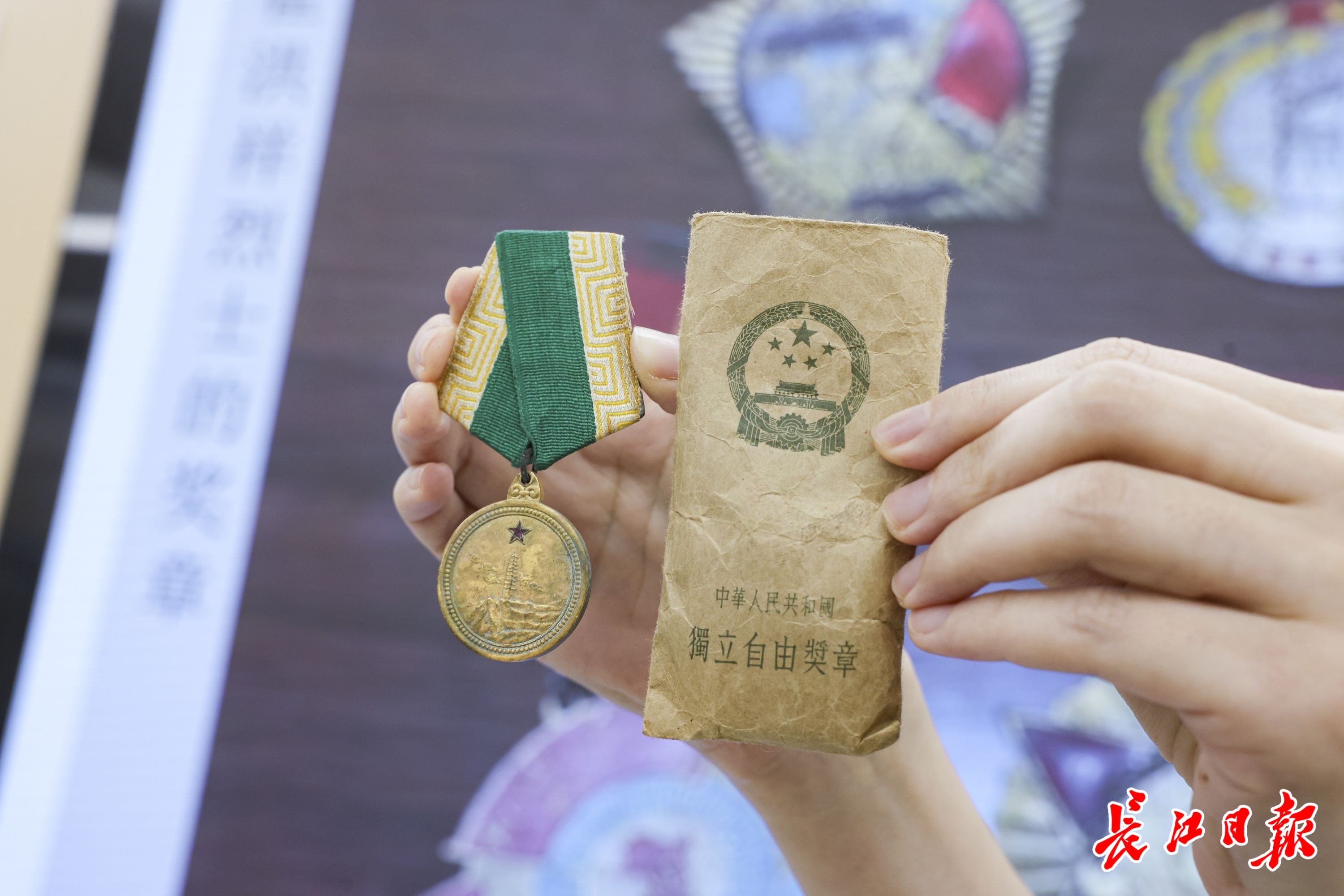 “打仗就一定会有牺牲,可以永世长存的只有信仰和精神。”3月30日,崔晋文轻轻捧着一枚独立自由奖章,从前排依次走到后排,让学生们近距离查看。奖章正面刻有延安宝塔、祥云和红五星,是国家授予在抗日战争时期部分有功人员的证章。