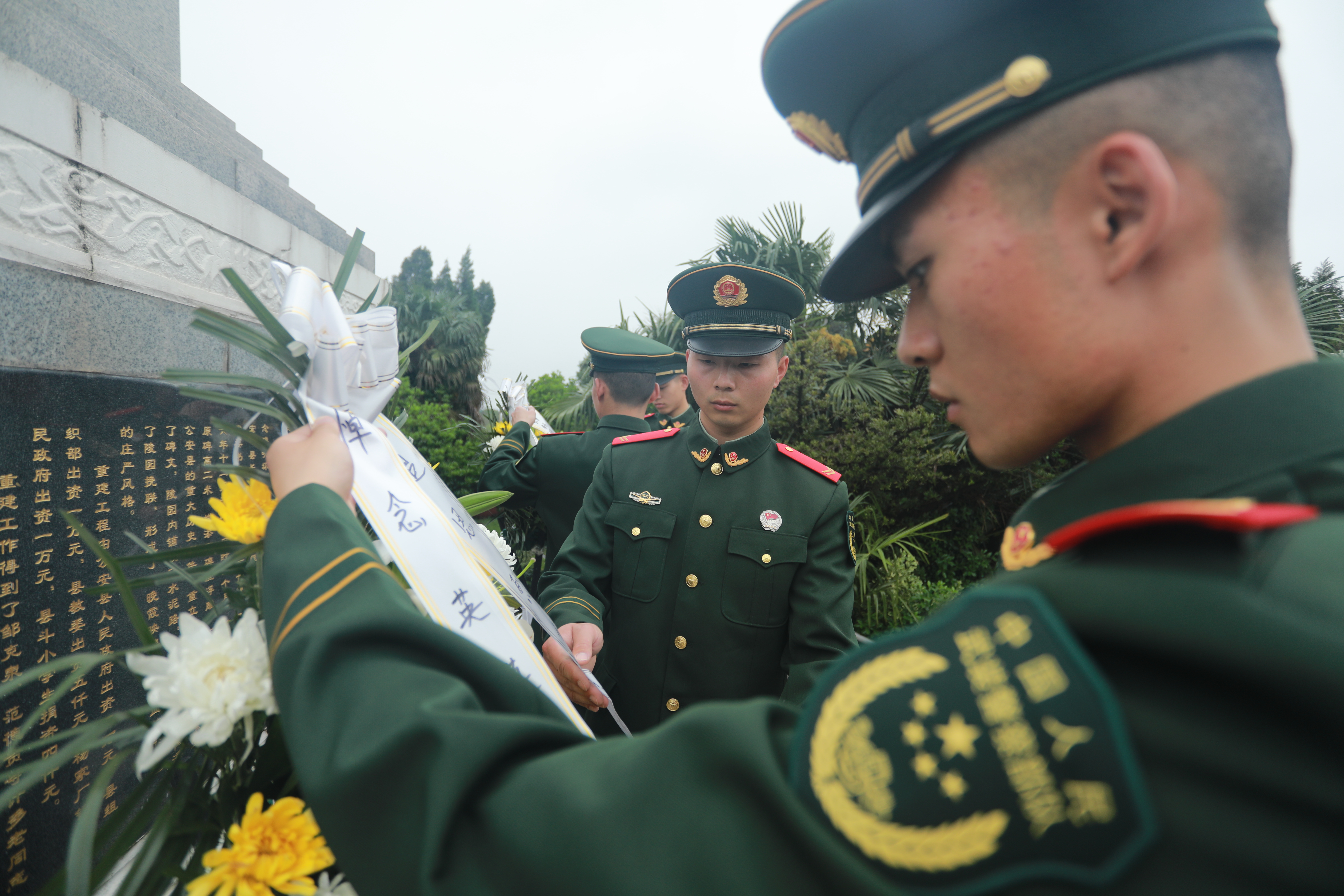 武警官兵到烈士陵园祭奠革命先烈。 通讯员陈超 摄
