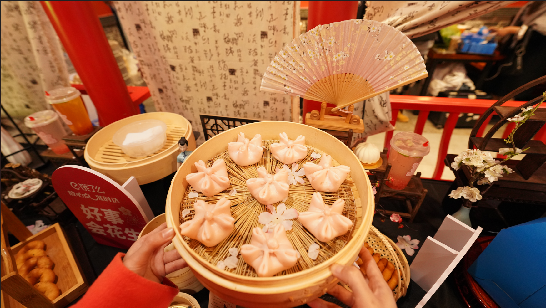 在自己的电商账号上,德华楼开设多场“3月来武汉看樱花+吃中华老字号”直播,向市民游客推介“春分樱花宴”,粉嫩松软的樱花豆沙包、爽口的樱花气泡水、冰激凌口味的樱花白桃抹茶包、复古创新的樱花香柠绿茶……各种“樱花+X”新式糕点和创新饮料令人眼前一亮。